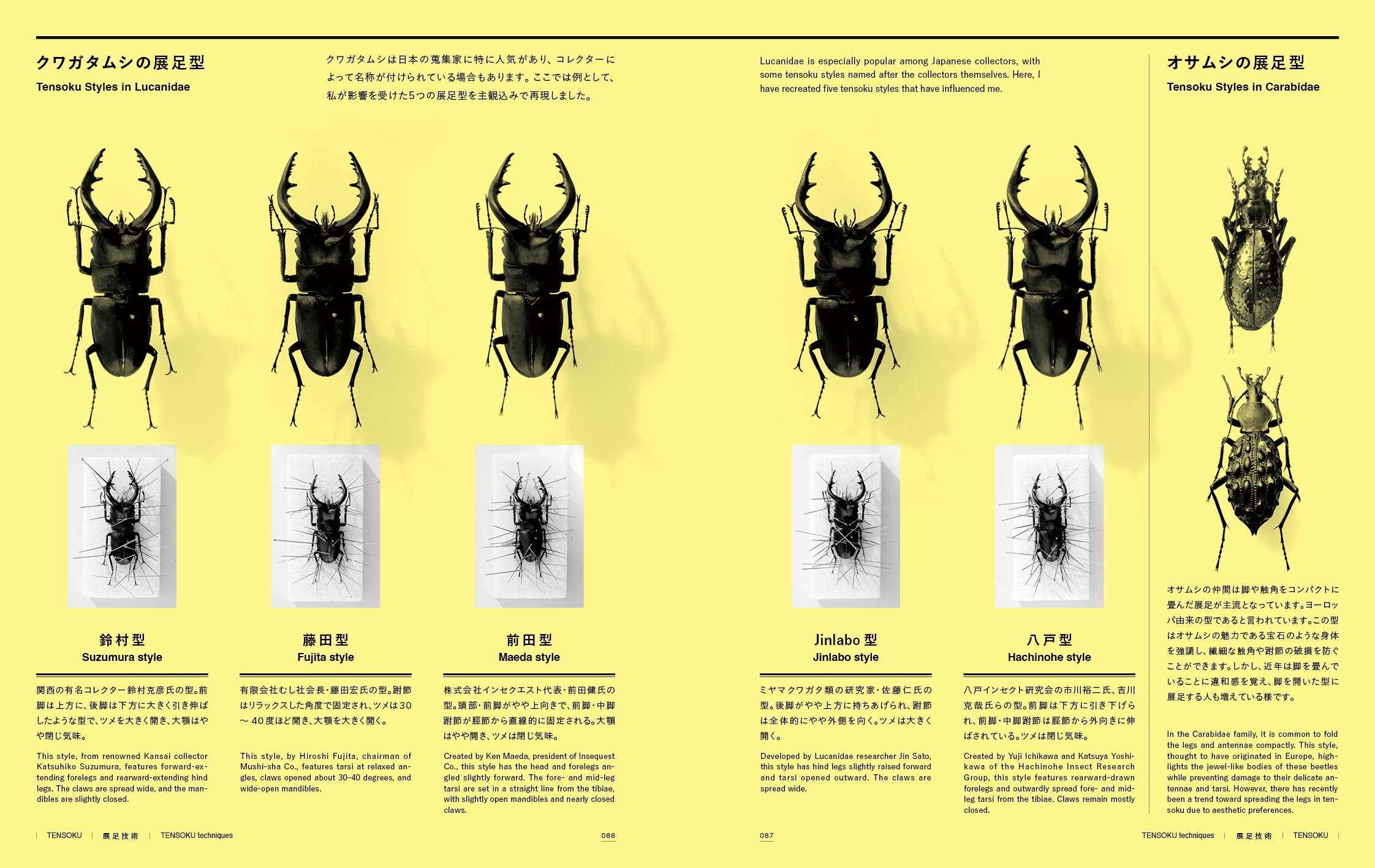 また、福井氏独自の展足技術を惜しげもなく紹介した技術解説ページのほか、昆虫研究者の小林一秀氏による「昆虫標本の歴史」についての解説も読み応えたっぷり。