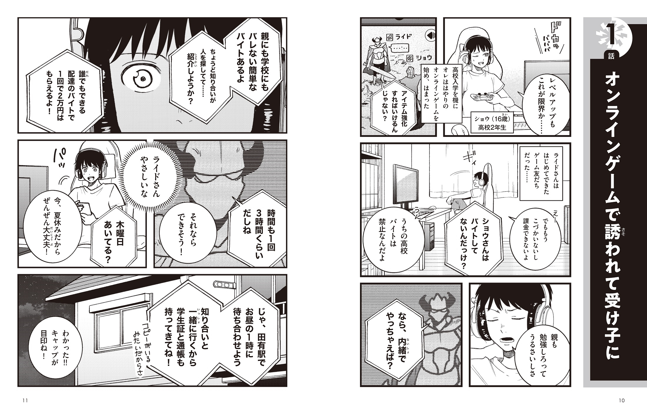 知らぬ間に犯罪行為をさせられる「闇バイト」が、10代〜20代の間に広がっている。一度、手を染めたら簡単にはやめられない恐怖のバイトに、どうしたら誘われずに済むのか。マンガで事例を紹介しながら、闇組織の手口を解説する。