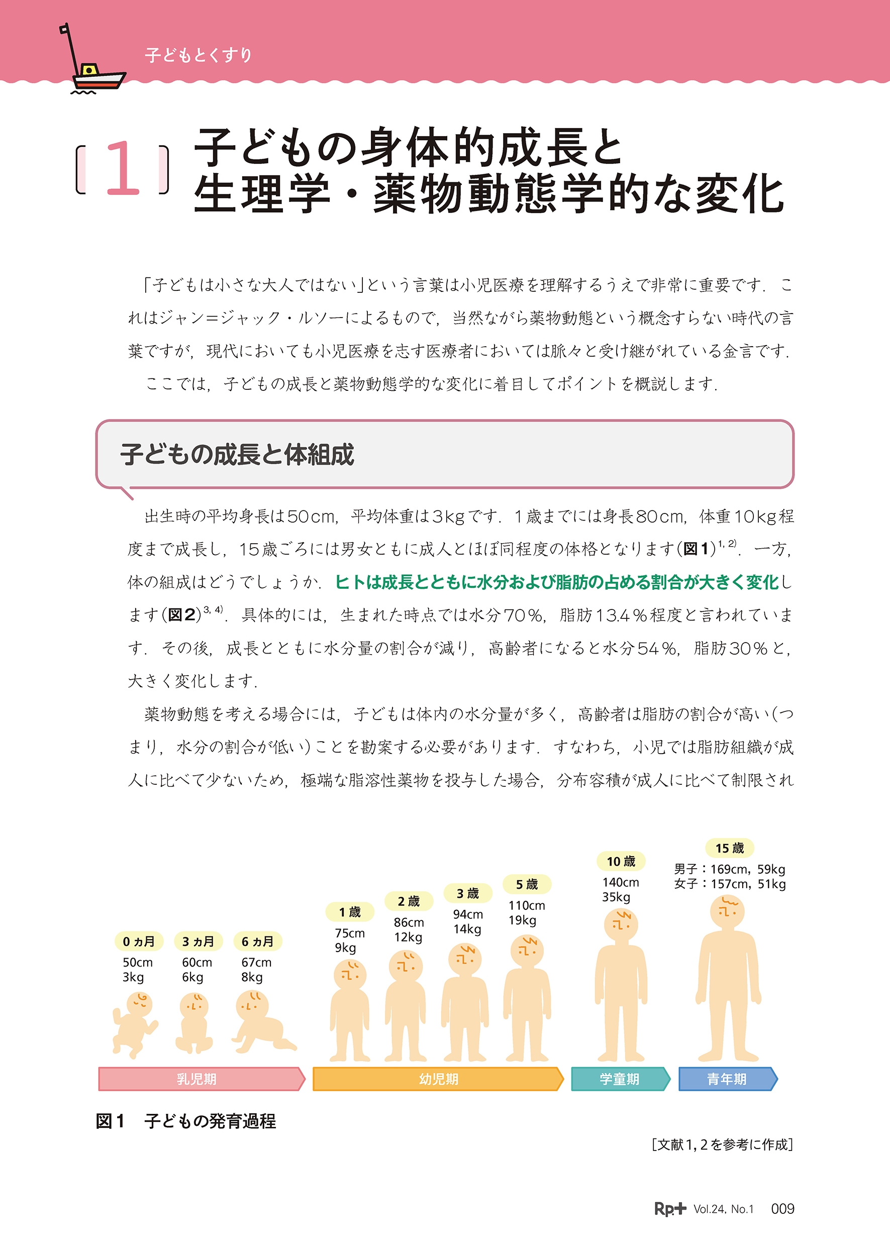 教育論では「子どもは小さな大人ではない」という有名な言葉がありますが,これは生理学や発達心理学でもあてはまります.子どもは子どもなりの薬物代謝機能をもっているほか,子どもなりの認識力を使って,受診時や来局時の状況を判断し,理解しています.安全・安心で適切な薬物治療のためには,子どもの年齢ごとの特性にあわせた薬の選択と,理解度・身体機能の発達にあわせた服薬のサポートが必要です.