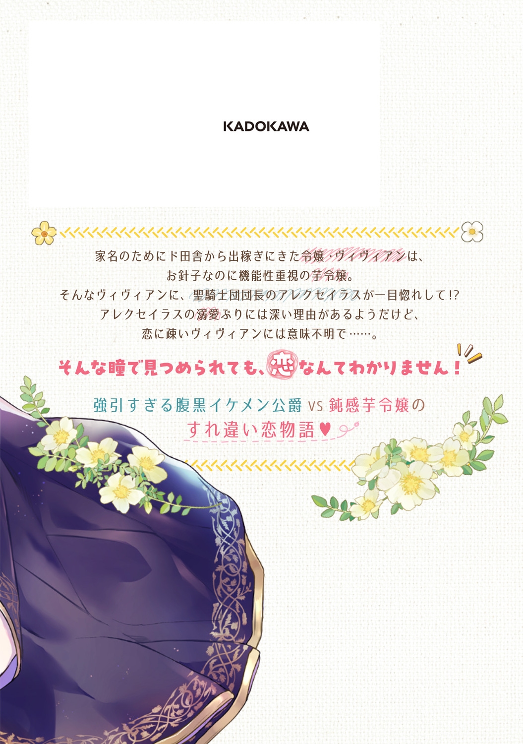 彼の行動には深い理由があるようだけど、恋に疎いヴィヴィには意味不明で……。腹黒イケメン公爵の一途な恋心は、芋令嬢には重すぎます。