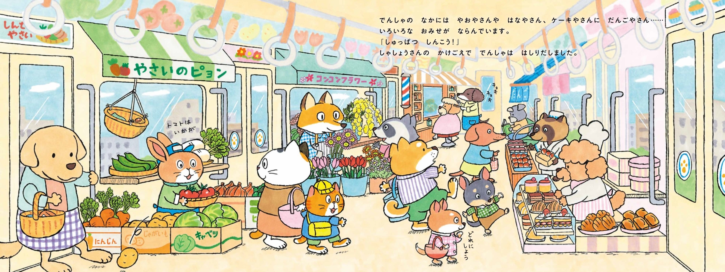 電車の中が商店街!? こんな電車にのってみたい! 夢が広がる「お買い物×電車」絵本!