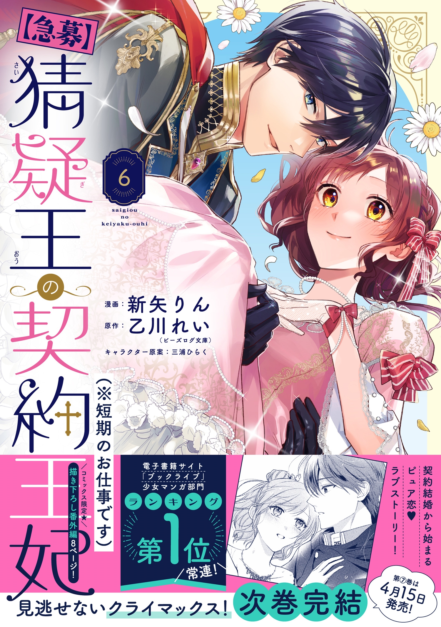 「君は私にとってどれだけ大事な存在か自覚すべきだ」契約期間が残りひと月となり、お互いに別れを意識する中、エステラへの想いが抑えられないヴィクリスのとった行動とは!? 一方、エステラを狙う謎の教団と幼少期の記憶にまつわる衝撃の真実が発覚し、事態は急変――!! こじらせ国王陛下×純粋無垢な修道女見習い令嬢、契約結婚から始まるピュア恋・ラブストーリー、クライマックス間近の第6巻!