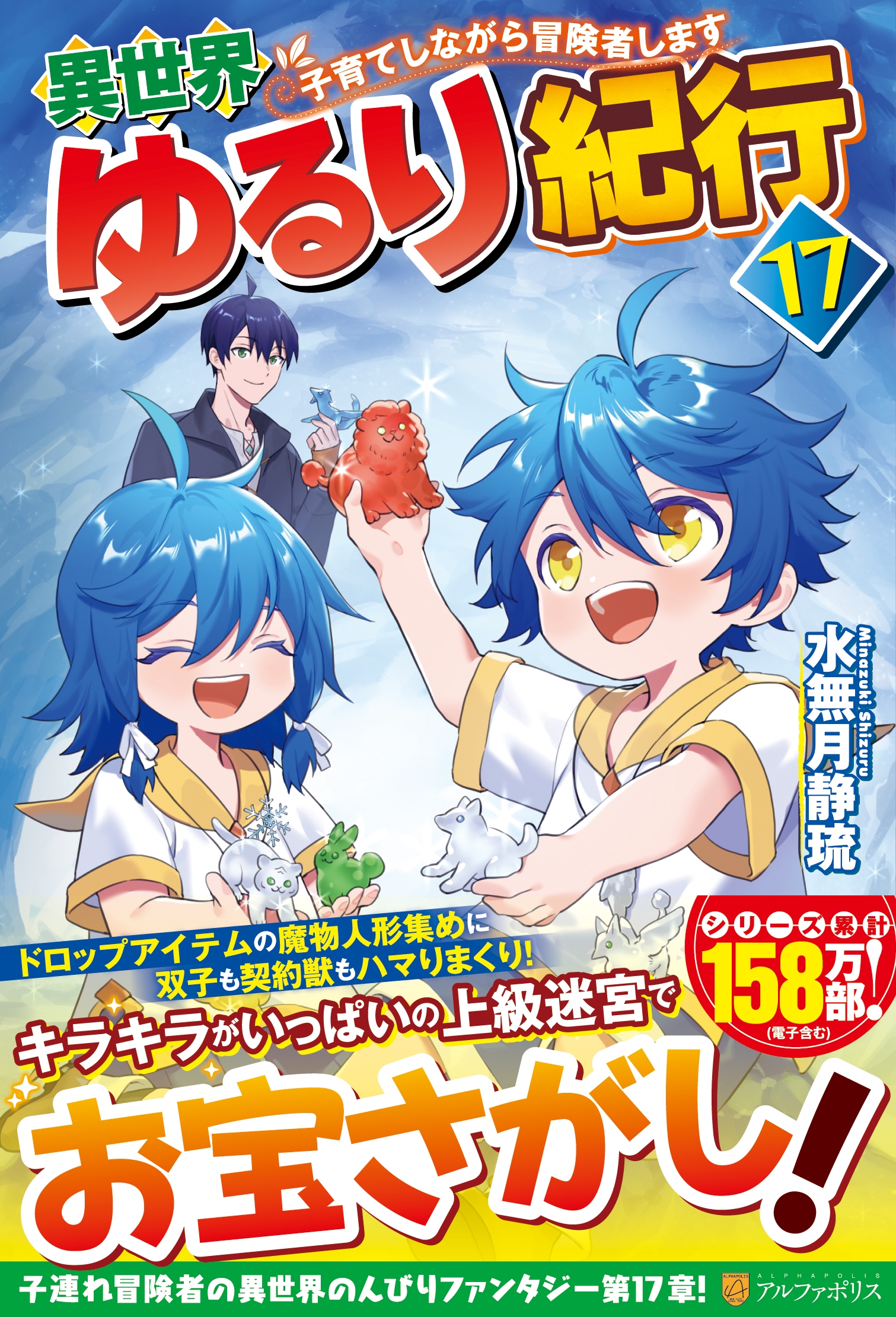風の神シルフィリールのミスによって命を落とし、異世界に転生したタクミ。森の中で双子のアレンとエレナを保護した彼は、冒険者として生活を始めた。レギルス帝国で上級迷宮の攻略を満喫していたタクミ達のもとに、後見であるリスナー家の次男、パトリックがやってくる。彼と一緒にガディア国に戻ることになった一行は、最後にもう一度、上級迷宮へ挑戦する。そして、とある階層で、魔物の樹脂人形がドロップすることと、契約獣みんなの人形も出てくるかもしれないことが分かると、子供達はいっそう張り切り出して――転生冒険者の子連れ異世界のんびりファンタジー、第17弾!