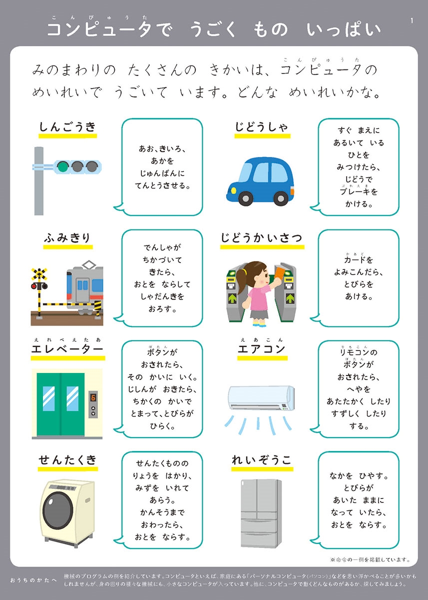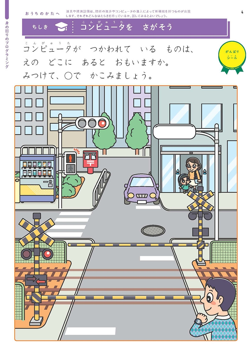 (身の回りのコンピュータを探す問題や、身近な家電、踏切、信号などを題材にした問題も多数)