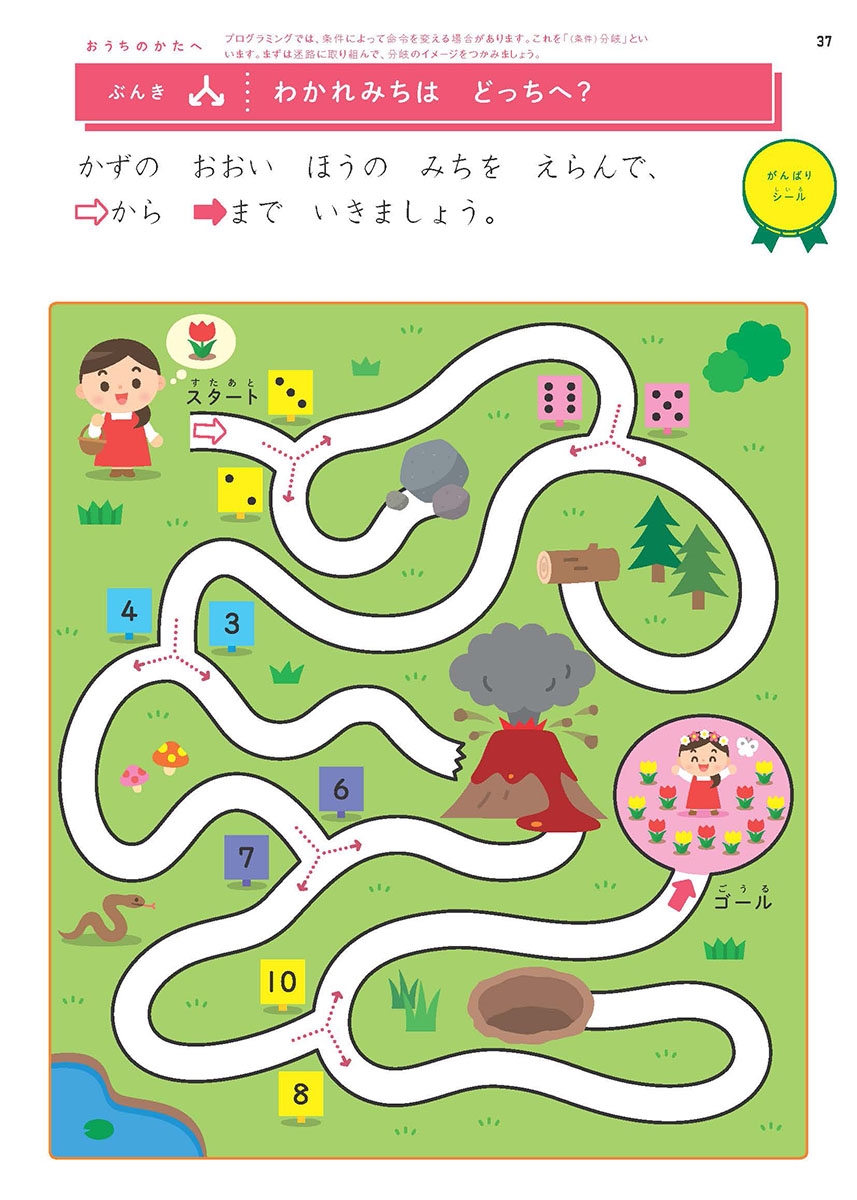 ・「ちえ」分野の延長線上の問題で、プログラミングに親しめる