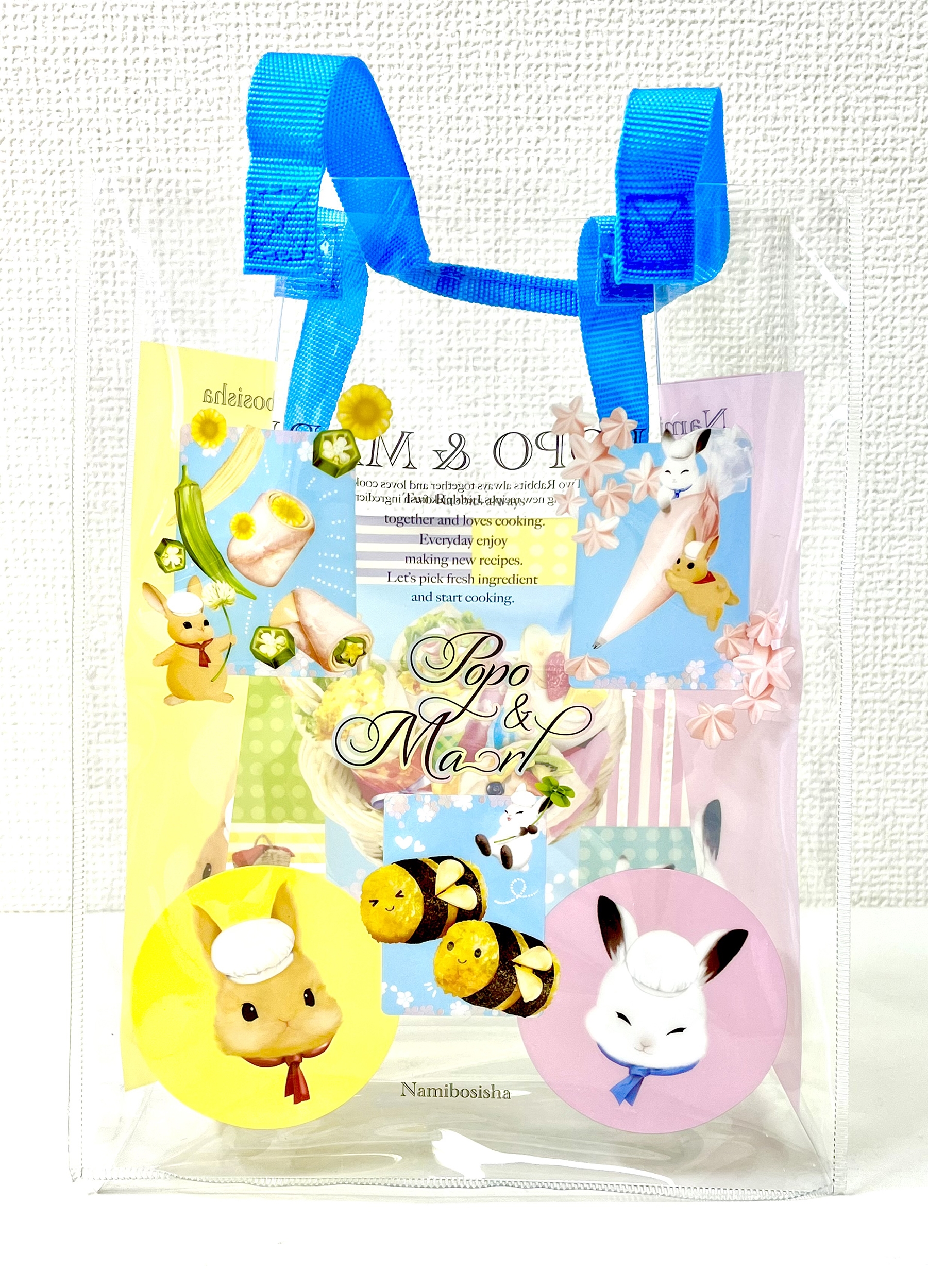 春のお出かけにぴったり!かわいいうさぎのキャラクター「ポポとマール」が描かれた透明トートバッグ。明るい持ち手が春らしく、お弁当やおやつを入れてお花見やピクニックに最適です。お子さまから大人まで使いやすいサイズで、お出かけがもっと楽しくなります!