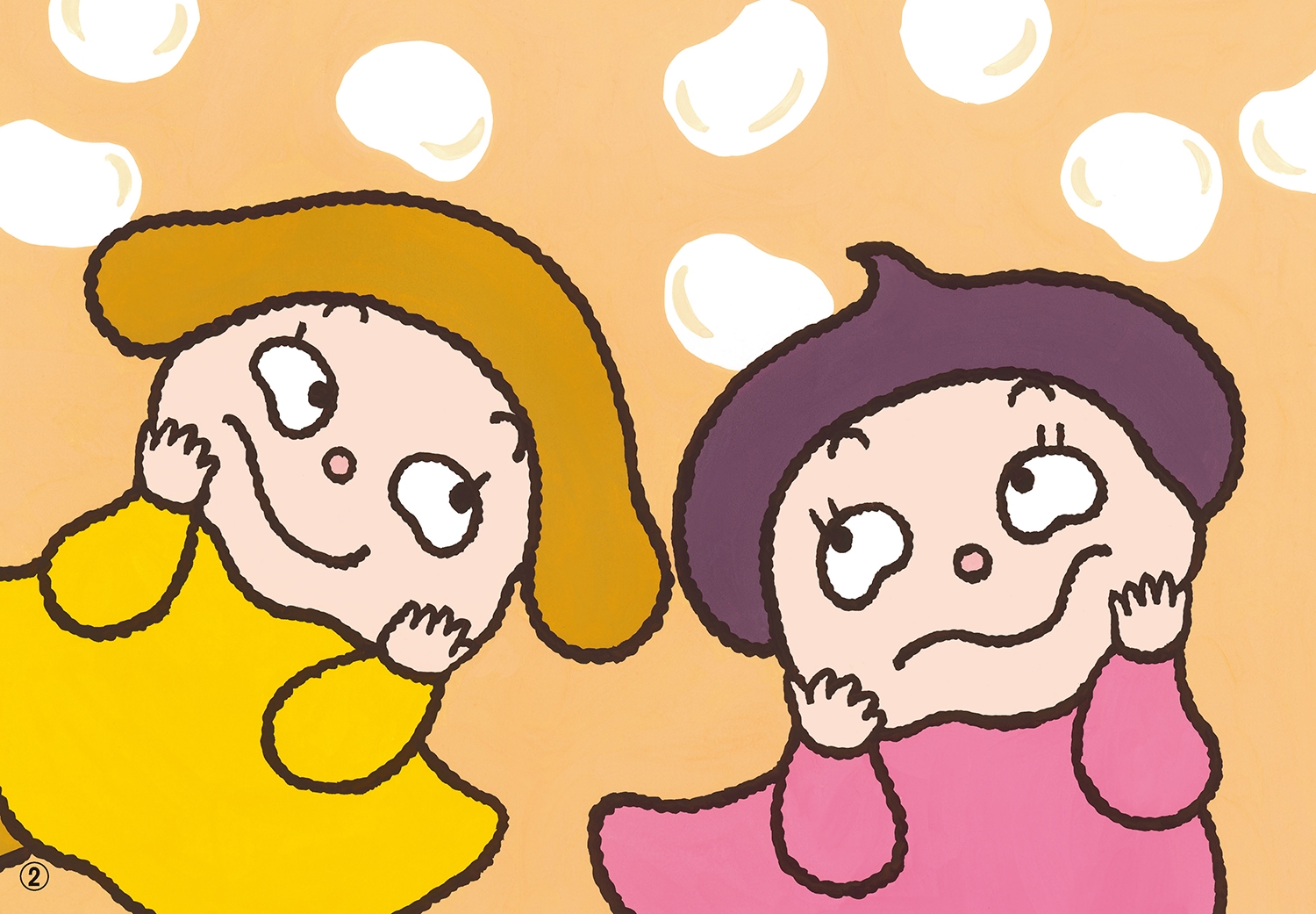あんちゃんときなちゃんが、ほっぺをこねこねして遊んでいると、白いもちっこたちが出てきました。もちっこは、あんころもちと、きなこもちにへんしん!
