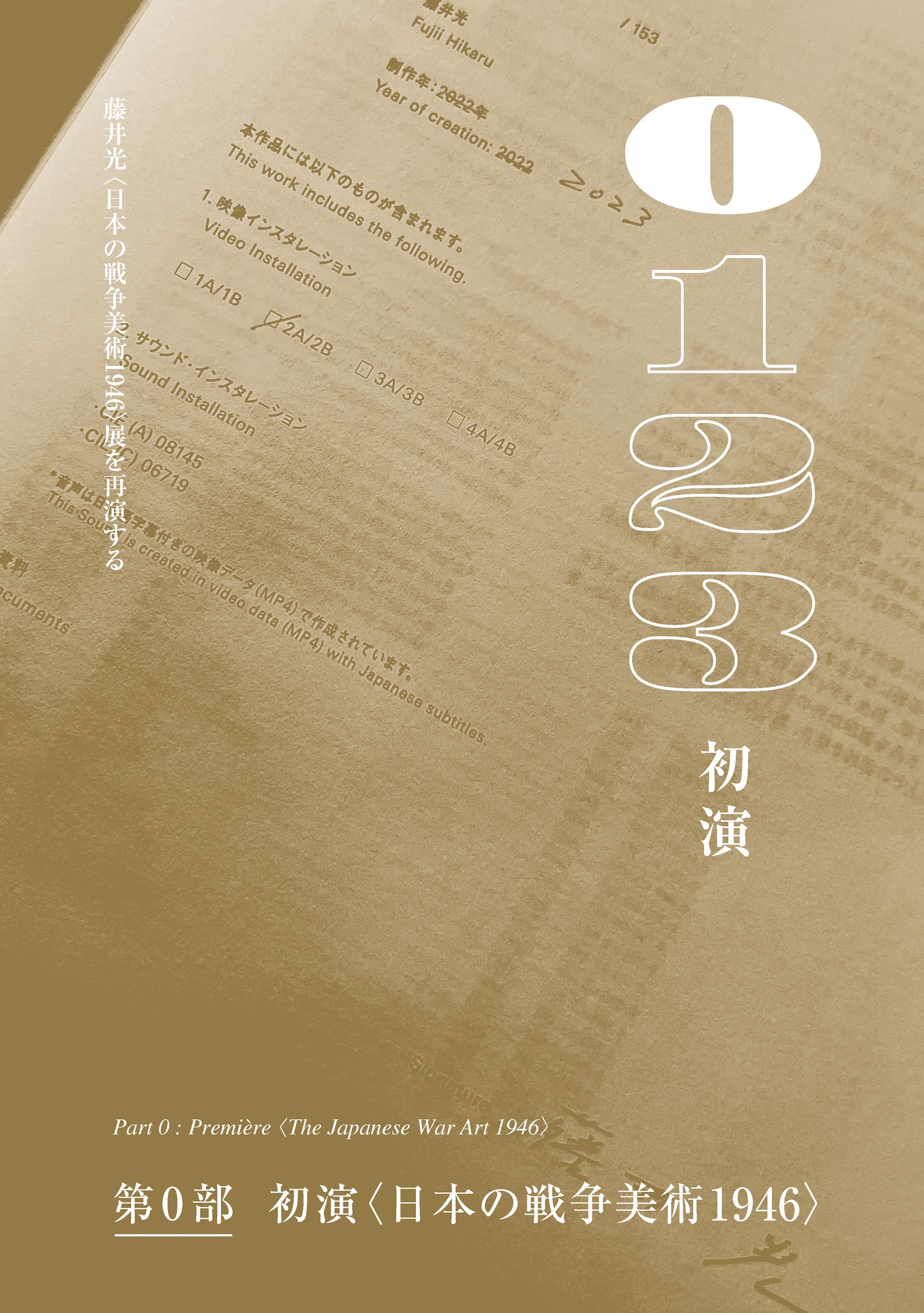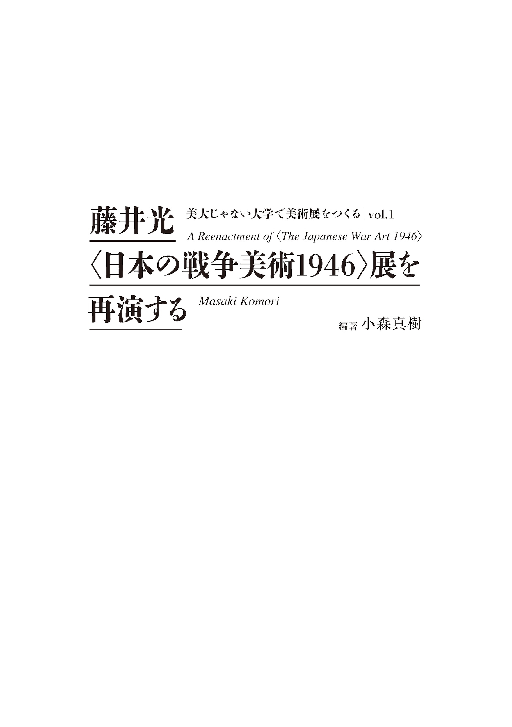 映像作家の藤井光は、この「日本の戦争美術」展の史実を入念にリサーチし作品化。1946年の「日本の戦争美術」展を会場に再現した絵画展に、歴史史料からシナリオを起こした対話劇型の映像インスタレーションを加え、2022年に東京都現代美術館で〈日本の戦争美術〉展として発表した。さらにコロナ禍の影響が残る2023年には、ウェブ上のバーチャル展覧会として同展を開催している。 この2つの展覧会をふまえ、2024年3月に武蔵大学で平日5日間限定で開催されたのが、本書の元となった「美大じゃない大学で美術展をつくる|vol.1 藤井光〈日本の戦争美術 1946〉展を再演する」(企画:小森真樹)である。