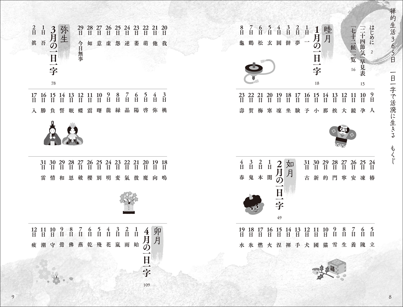 本書では、芥川賞作家であり禅僧でもある玄侑宗久氏が、「毎日の一文字」365字を選定しました。