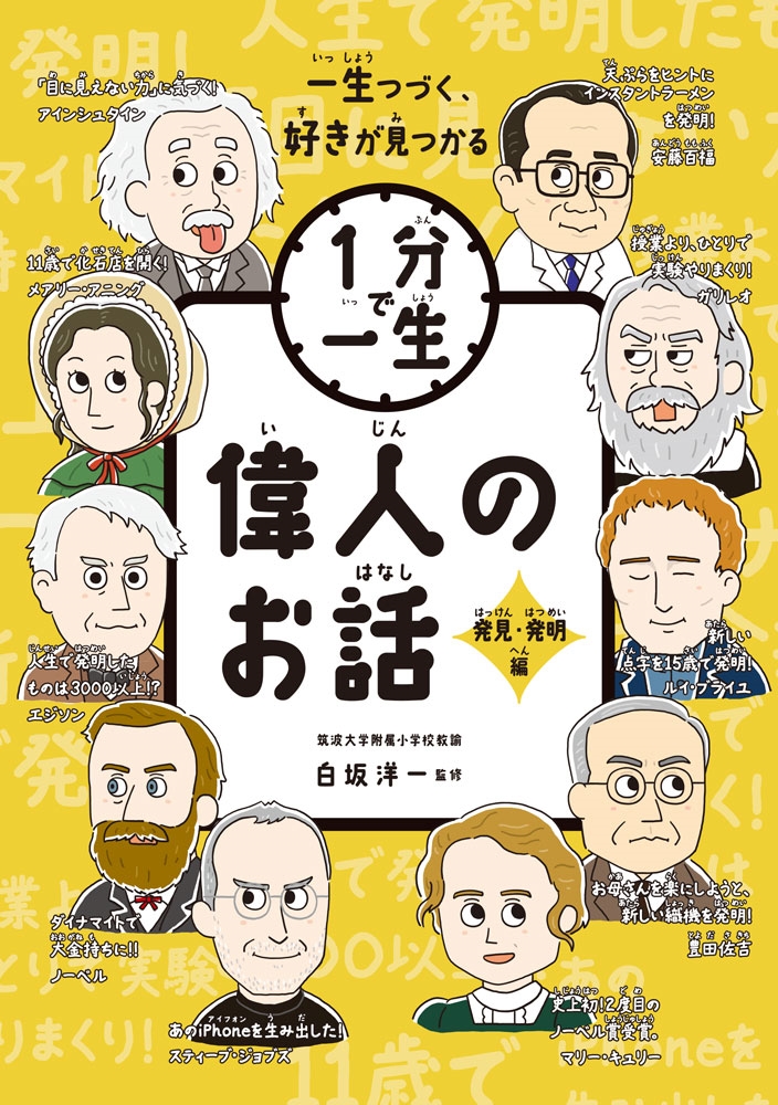 ガリレオ・ガリレイ/アインシュタイン/メアリー・アニング/安藤百福/ルイ・ブライユ/エジソン/豊田佐吉/ノーベル/スティーブ・ジョブズ/マリー・キュリー