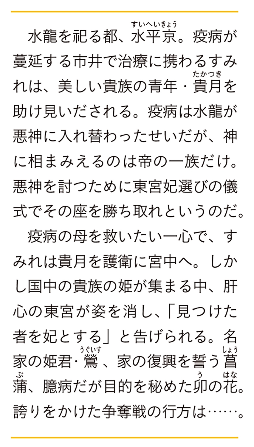悪神を討つために東宮妃選びの儀式でその座を勝ち取れというのだ。