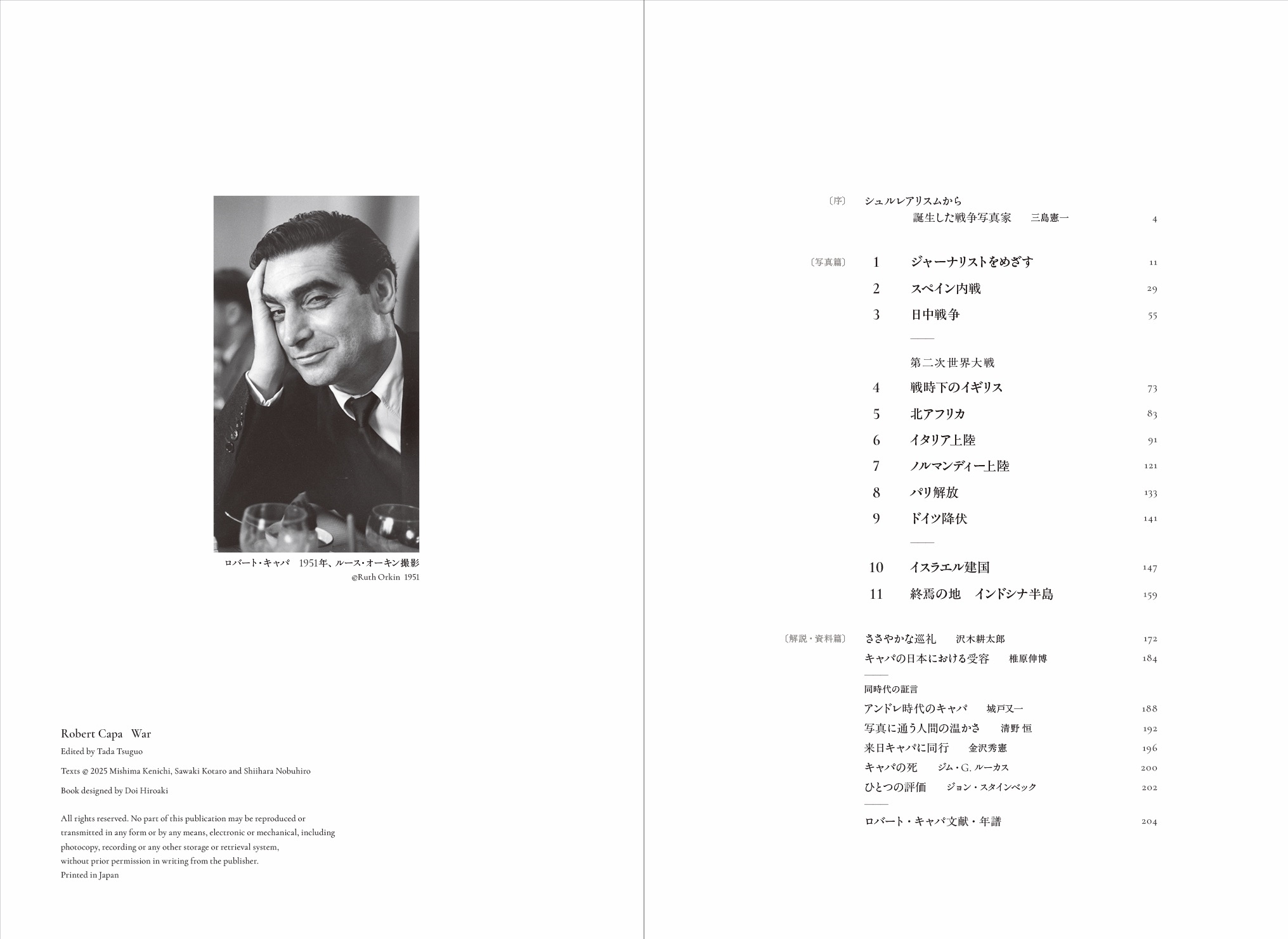 20世紀が生んだ偉大な写真家のひとり、ロバート・キャパ。「カメラの詩人」と言われ、またすぐれた「時代の証言者」でもあります。その写真の背景には苦闘するヒューマニストの眼があります。戦争の苦しみをとらえるとき、そこにキャパの人間としてのやさしさ,ユーモアがあります。キャパは人間を取り捲く状況を少しでもよいものにしようというつよい信念と情熱をもって状況に身を投じましたが、それだけでなく写真のもつ衝撃力を見分ける確かな眼を持ち合わせていました。1930年代ヨーロッパの政治的混乱、スペイン内戦でドイツ・イタリアのファシスト政権に支援されたフランコ将軍の反乱軍によって次第に圧倒されて敗北する共和国政府軍、日本軍による中国の漢口爆撃、第二次世界大戦で連合軍の対ドイツ反攻作戦の始まる北アフリカから、イタリア戦線、ノルマンディー上陸作戦などの戦闘現場に立会い、命がけの取材写真は眼に見える確かな記録として報道されました。それらの多くは時空を越えて、後世の人びとにも訴えかけるつよいメッセージとなっています。本書では数々の傑作から、"戦争"に焦点を当てた作品を厳選しました。昨今のロシアとウクライナ、パレスチナやレバノンとイスラエル等の地域における紛争、シリアのアサド政権崩壊による影響など、世界の現状は、残念ながらキャパの願った「人間を取り捲く状況を少しでもよいものにしよう」という思いとはほど遠いものです。それ故に戦後80年のいまこそ、あらためてキャパの写真証言を見直すことの意義があります。