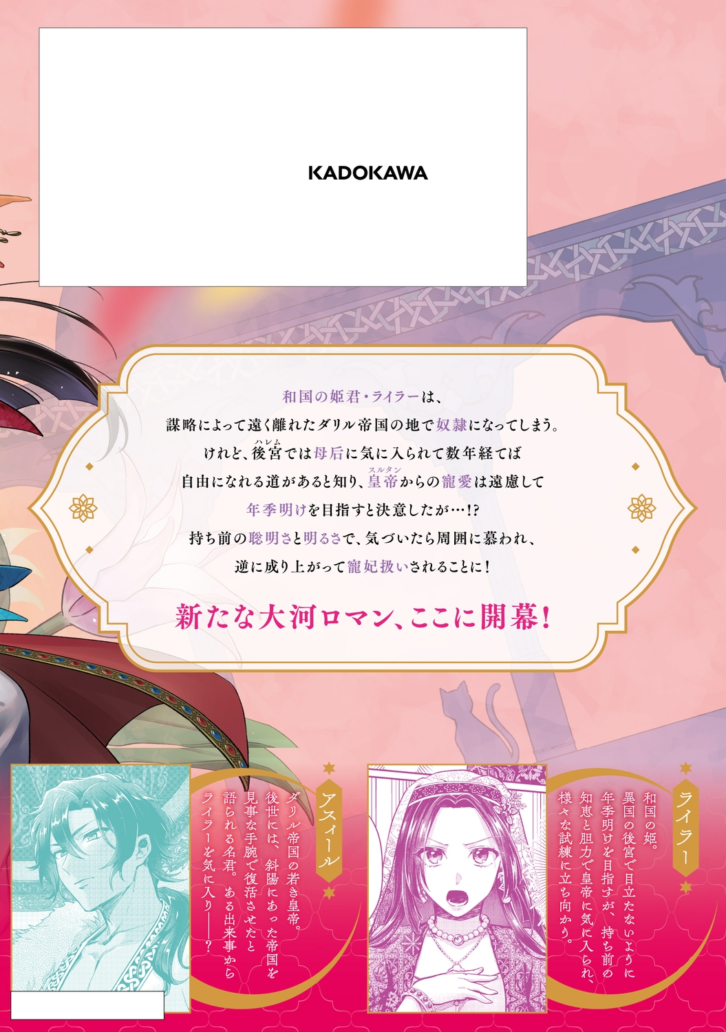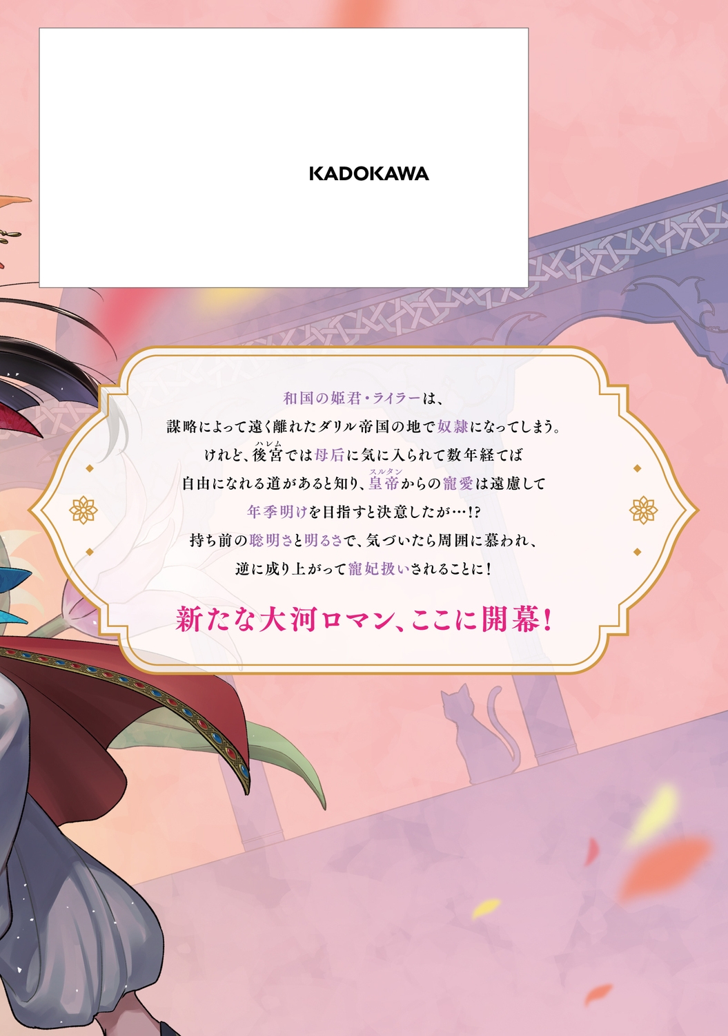 和国の姫。異国の後宮で目立たないように年季明けを目指すが、持ち前の知恵と胆力で皇帝に気に入られ、様々な試練に立ち向かう。