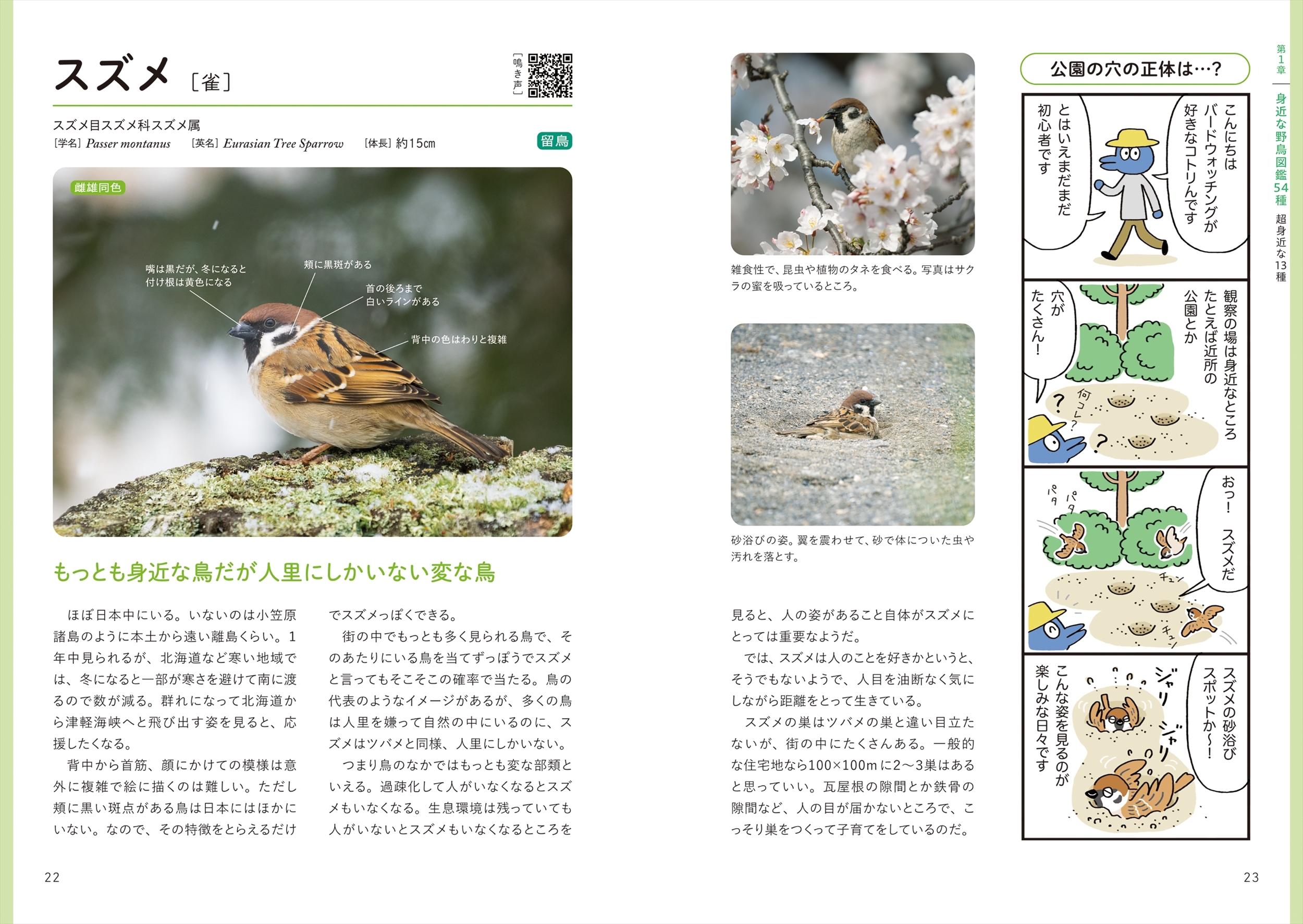 このように、いつも見かける鳥も季節によって変化があるのです。本書では、身近な鳥にスポットを当て、その特徴や生態、観察の楽しみ方を詳しく紹介しました。