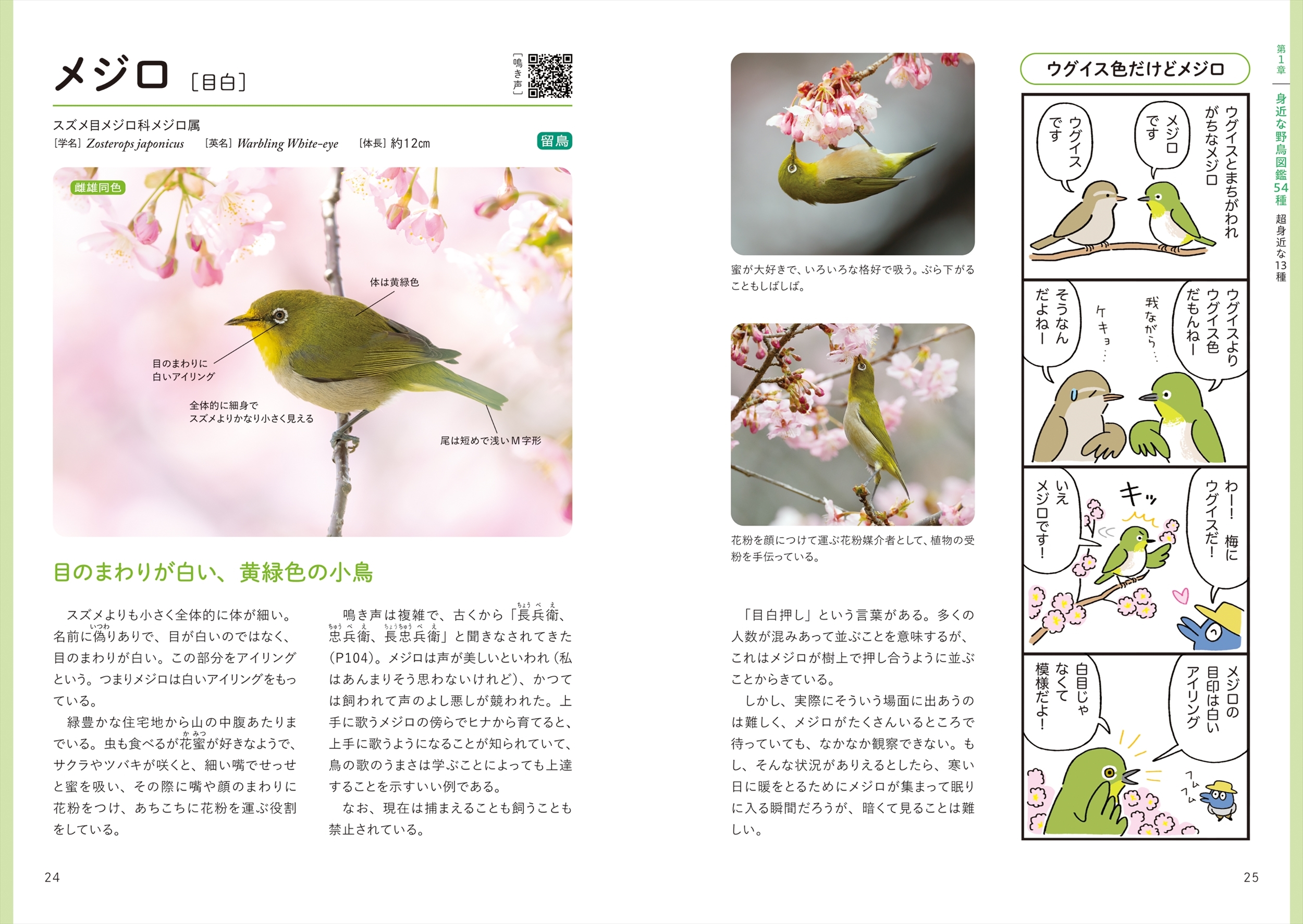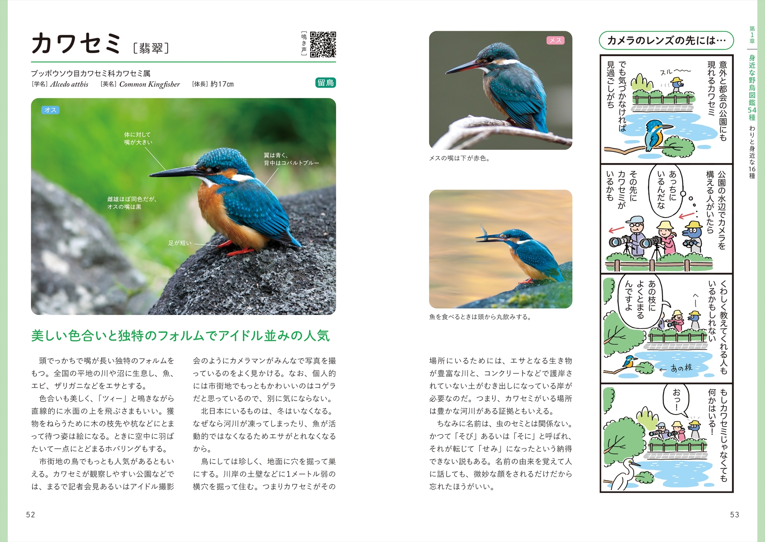本書では美しい野鳥の写真とともに、4コママンガやイラストも多用しながら、楽しく解説しました。初心者の方はもちろん、野鳥観察が趣味の方にとっても新たな気づきがある1冊です。