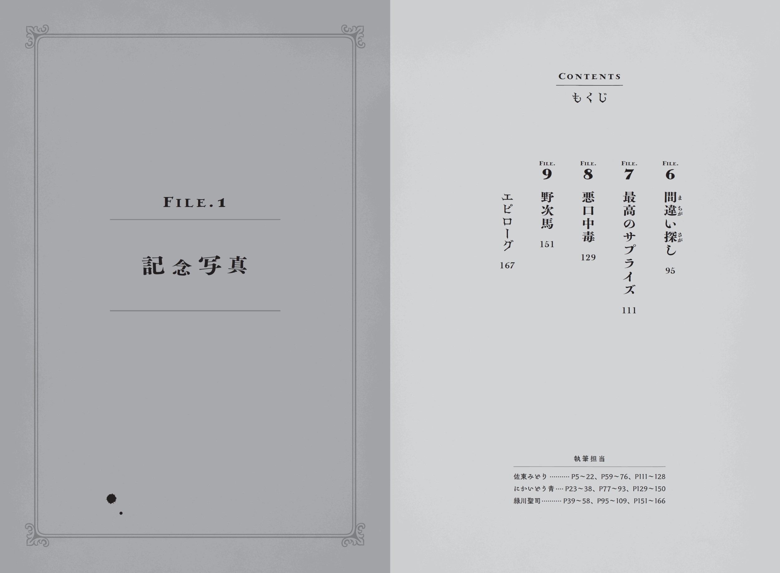 【目次】 記念写真/気づいてほしい/動画配信/ダイイング・メッセージ/ぼくたちはなかよし家族です/間違い探し/最高のサプライズ/悪口中毒/野次馬