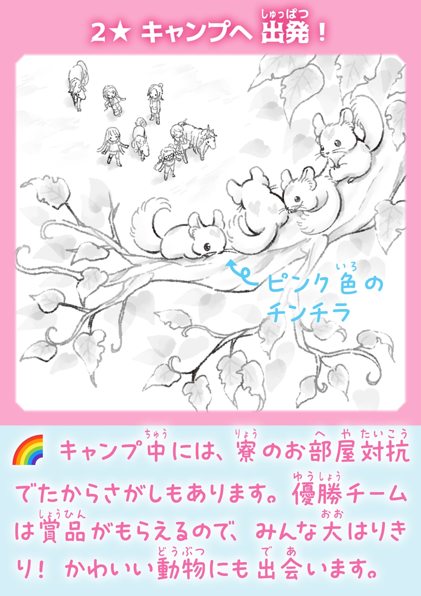 学園の行事で1泊2日のキャンプに出かけたときも、うっかり忘れものをして、チームとなったルームメイトたちに迷惑をかけてしまい…。マイペースのココが、みんなとうまくつきあいながら、どんなふうに成長していくか、みどころです。