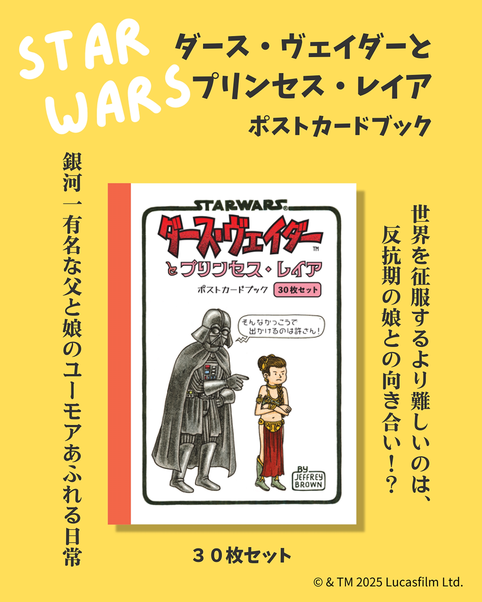 ジェフリー・ブラウンが描く、STAR WARSのユーモアあふれる父と娘の物語。 絵本「Vader's and Little Princess」から厳選された30枚のアートポストカードに、その心温まる名場面が閉じ込められています。