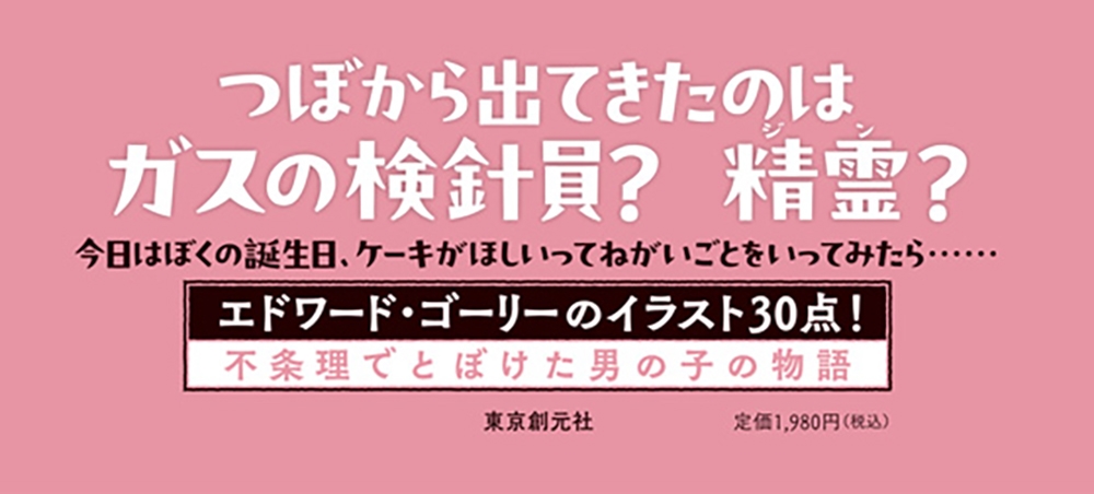 今日はツリーホーンの誕生日、おかあさんとおとうさんは忙しそうだけど、ちゃんとプレゼントはもらえるかな? 裏庭の地面の穴で見つけた古いつぼのせんを抜いたら、けむりといっしょに男の人があらわれた。これっておかあさんが待っているガスの検針員さん? それとも精霊? ためしにツリーホーンはねがいをかけてみることにした。ジンならかなえてくれるはず。エドワード・ゴーリーのイラスト30点。へんてこでとぼけた物語。