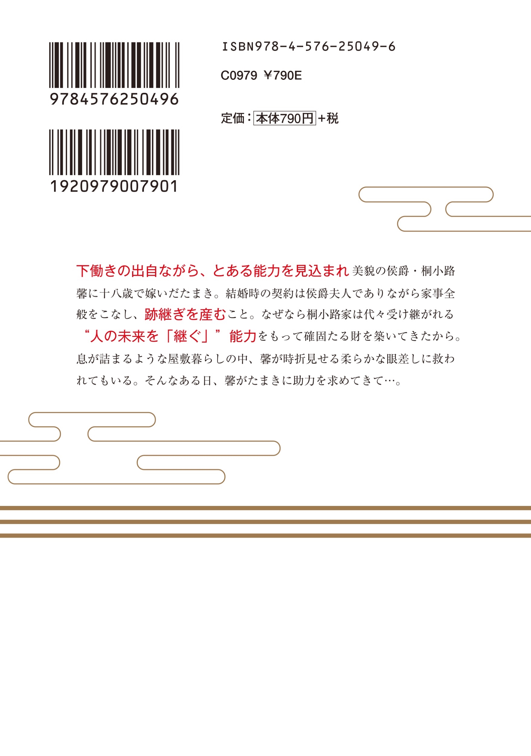 弟のために名家桐小路へ嫁いだたまき。夫の馨は聡明な人だったが、たまきが選ばれたのは「継ぎもの」という特殊な能力ゆえで…。