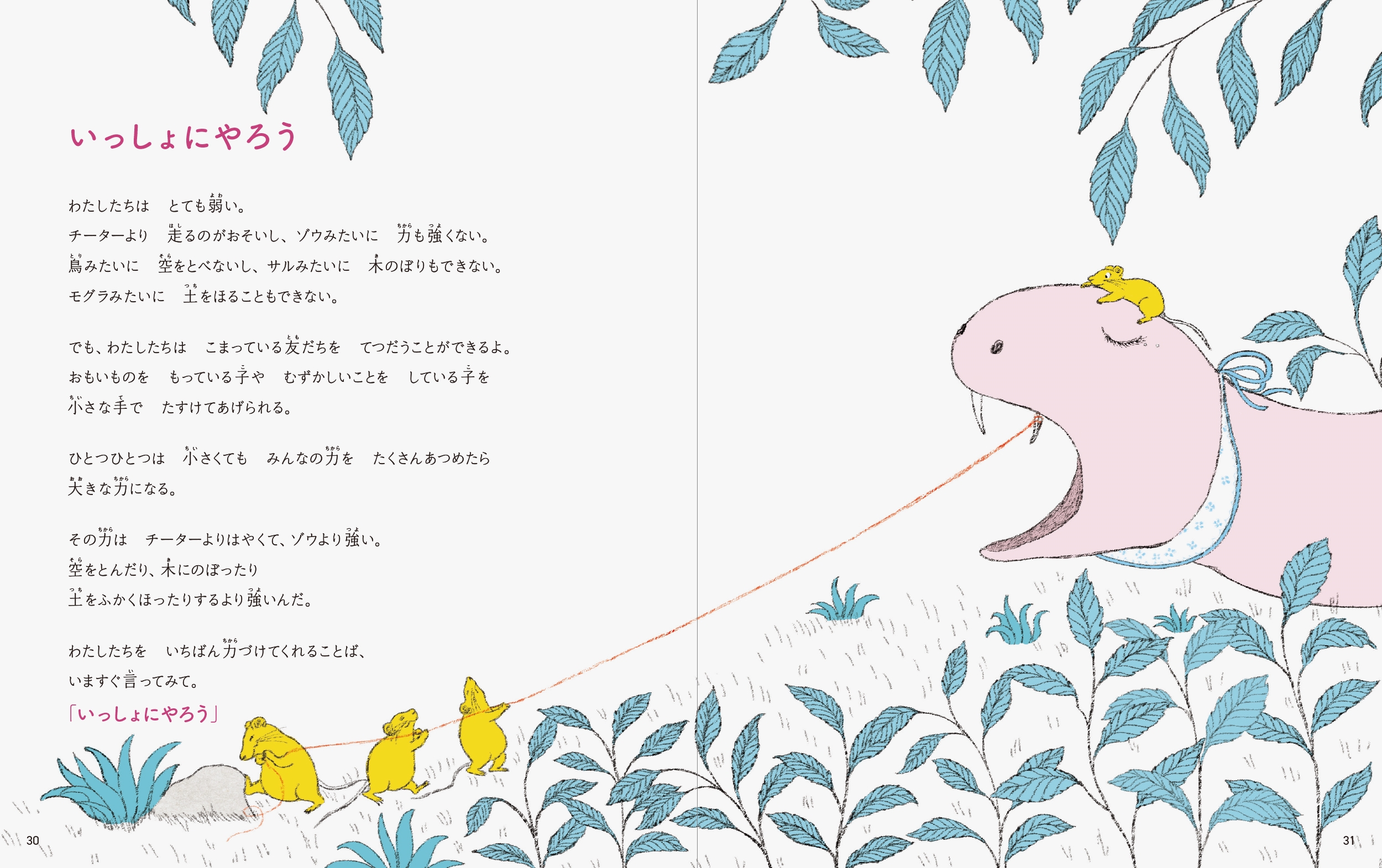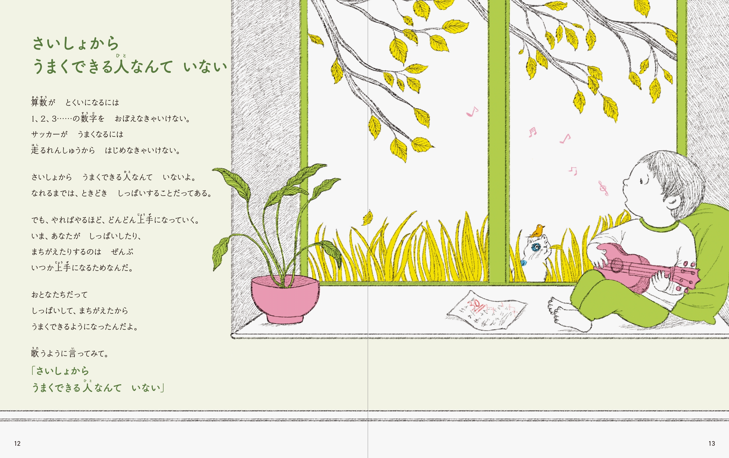 本書は、子どもの自己啓発に取り組む著者が、子どもたちが正しく育つためにたくさん使って欲しいと願いながら集めた言葉を紹介します。「むりだよ」より「わたしにもできるよ」、「むずかしい」より「きっとうまくいくはず」など、言葉使いをひとこと変えるだけで、ポジティブにそして毎日が楽しくなります。言葉使いの大切さを教えてくれる絵本です。