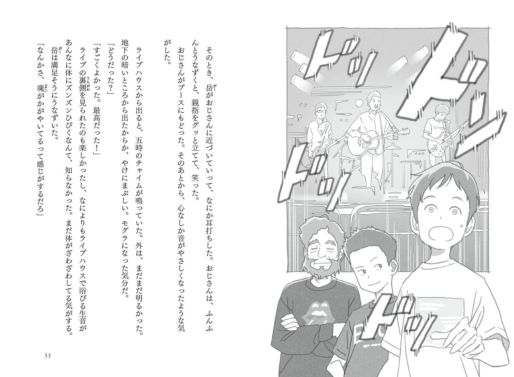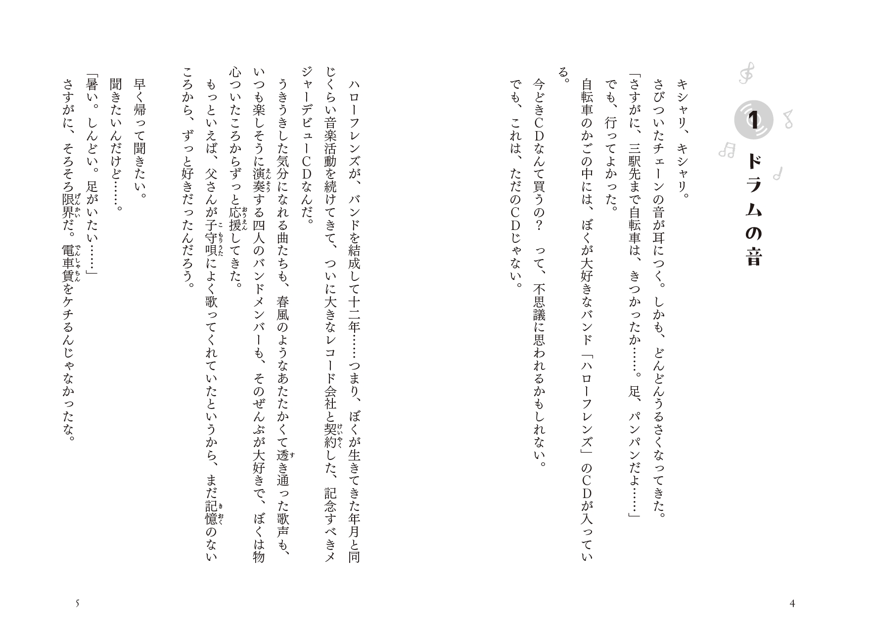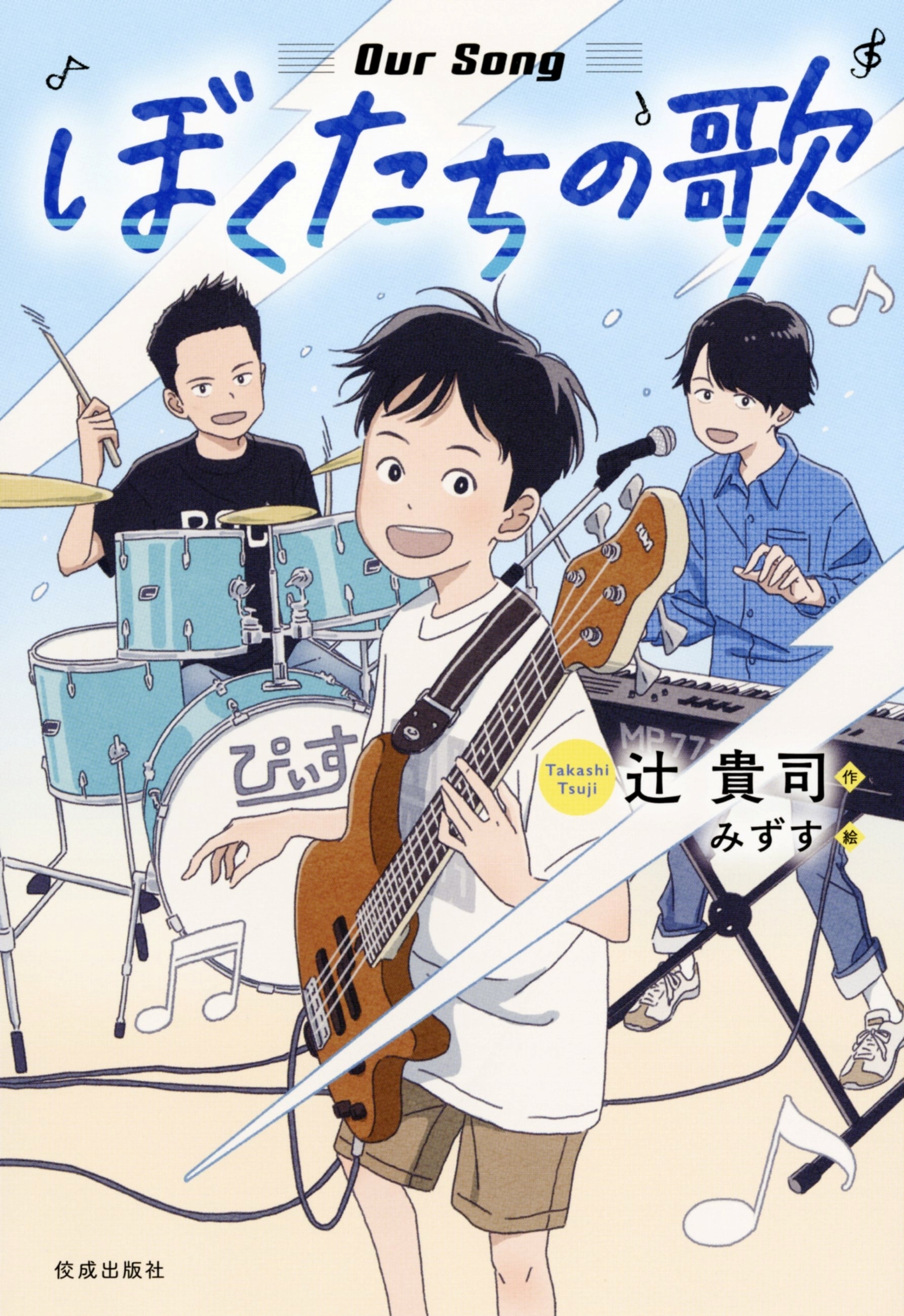 小さいころから大好だったバンドに憧れて"自分もいつかバンドを組んで、ライブをしてみたい"と、ひそかな夢を抱いていた小学6年生の一翔。ですが、何度挑戦してもギターが上手く弾けず、自分には楽器の才能がないと諦めかけていました。そんなある日、公園でドラムを演奏する少年・岳と出会い、ひょんなことからベースの弾き方を教えてもらうことになります。岳の熱心な指導のおかけで日に日に上達していく一翔。ですが、実は岳には一翔に秘密にしている、ある狙いがあり――。男の子たちの音楽に対する真っすぐな気持ちと、それをサポートする回りの大人たちの優しさに胸が熱くなる、さわやかな青春バンド小説です。