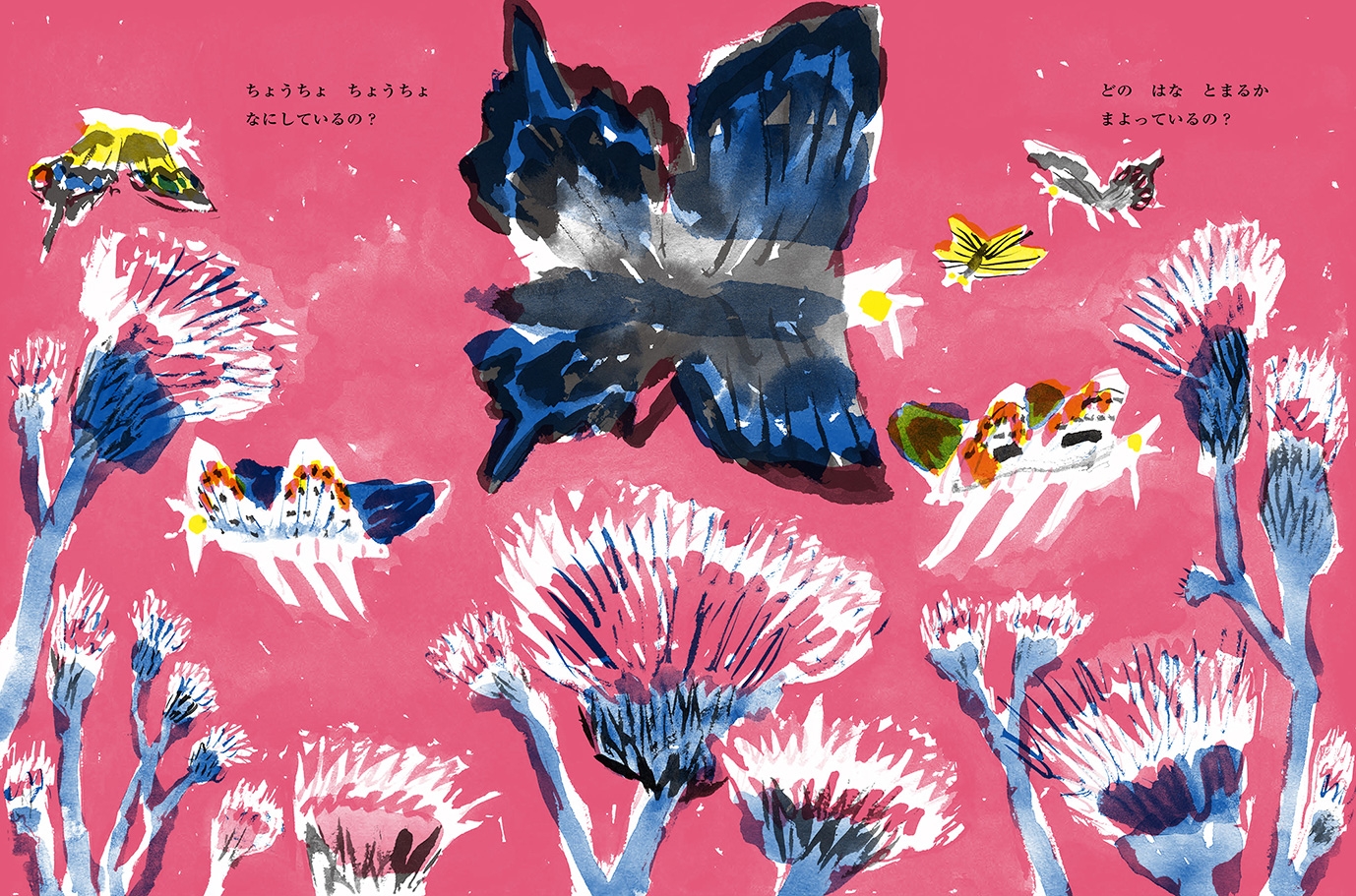 花から花へひらひらと舞うちょうちょは、身のまわりの生きものの中でも、特別に幼い子どもたちの興味をひきつける存在です。「ちょうちょ ちょうちょ どこから きたの?」「ちょうちょ ちょうちょ なにしているの?」素朴な問いかけにみちびかれて、ちょうちょの魅力を詩情ゆたかに描きます。