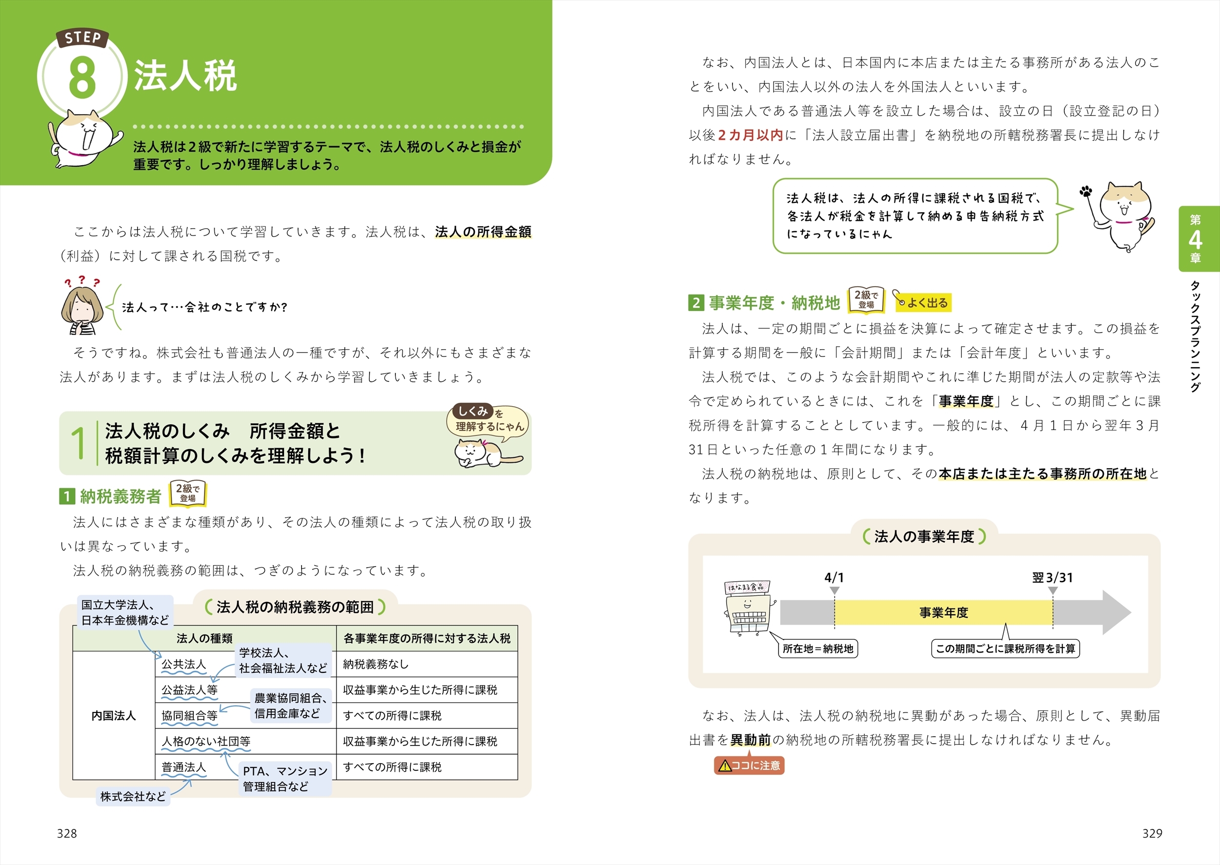 また、「所得税のしくみ」などの基本から、「法人税の所得金額」といった2級のポイントまでしっかり解説。