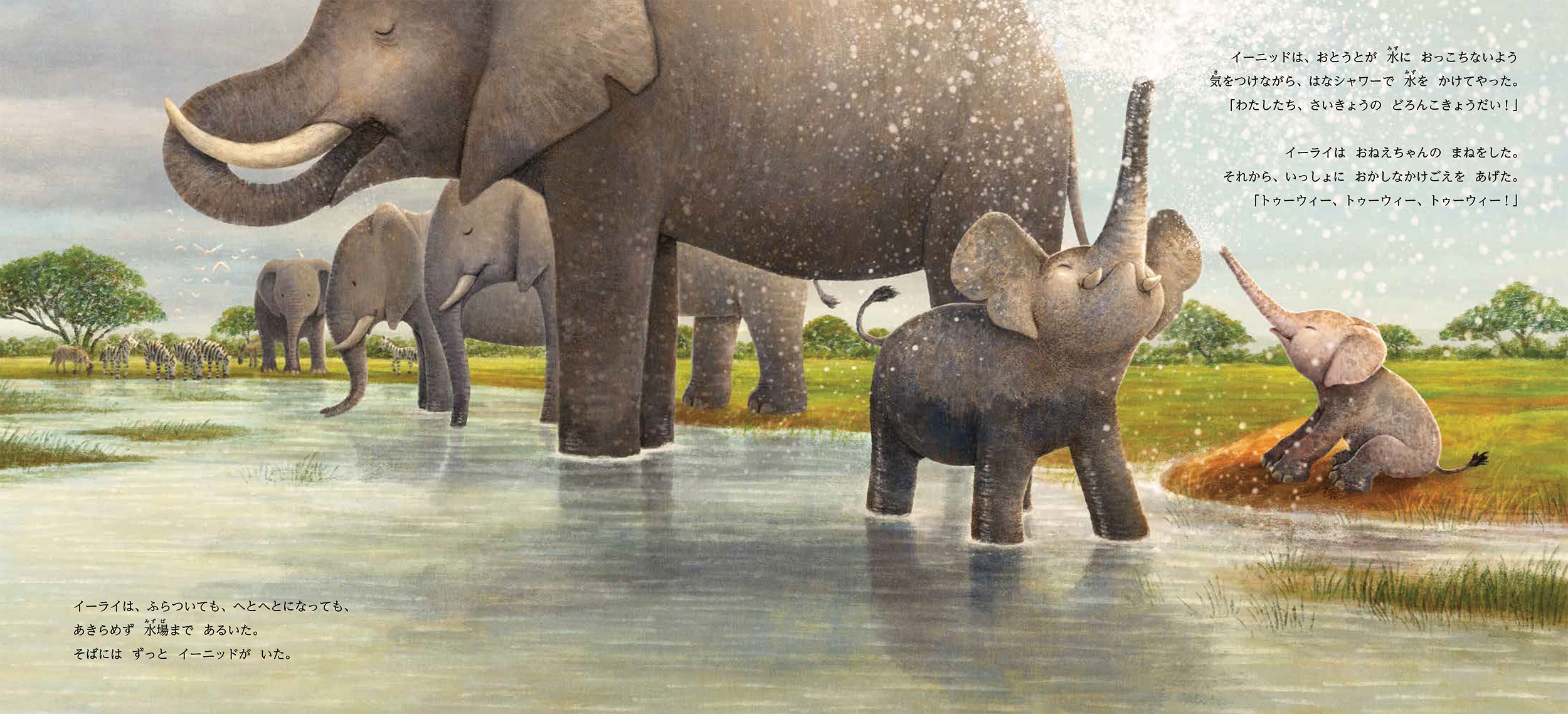 ゾウのイーニッドは、かんげいの歌をうたいます。今日からおねえちゃんになるのです。