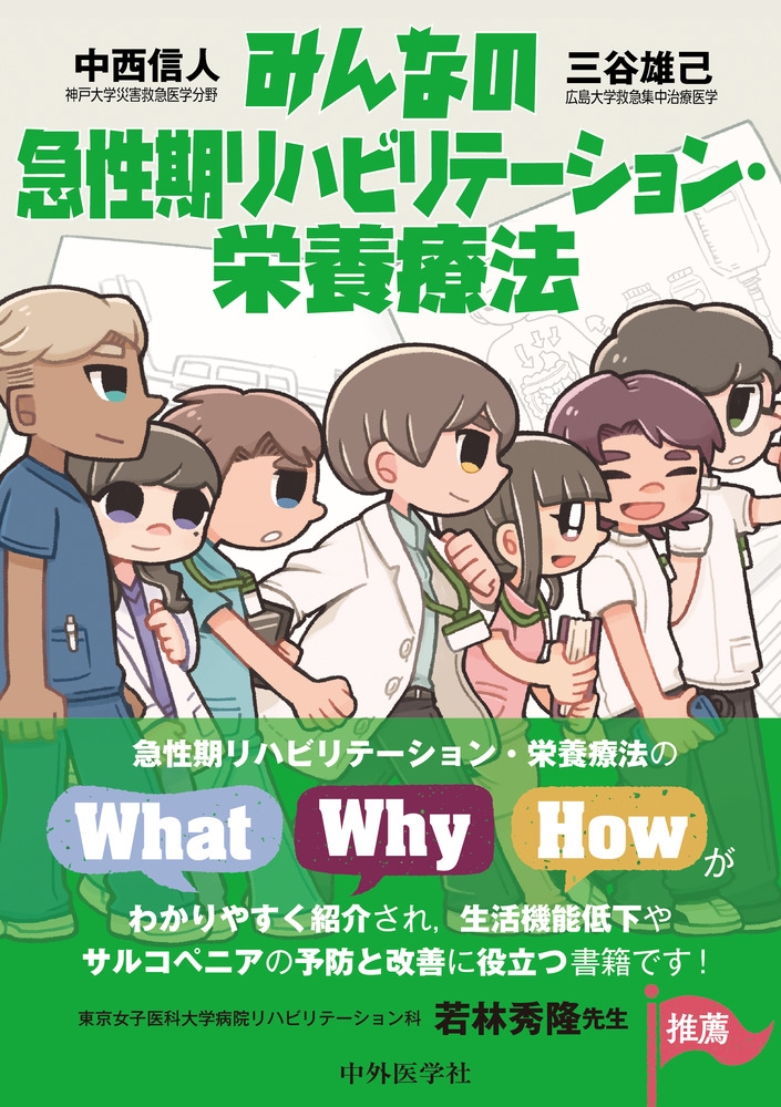 ICUやHCUなど多職種が協働する急性期病棟でのリハビリテーション,栄養療法について医師看護師のみならず,理学療法士,作業療法士,言語聴覚士,薬剤師,管理栄養士など多くのスタッフが実際の現場でどのように協働していくべきか,またそれによっていかにPICS(集中治療後症候群)を減らすことができるのかを,臨床の流れにそったわかりやすい解説と理解を助けるイラストとを交えて解説.急性期病棟スタッフ"みんな"のための入門書.