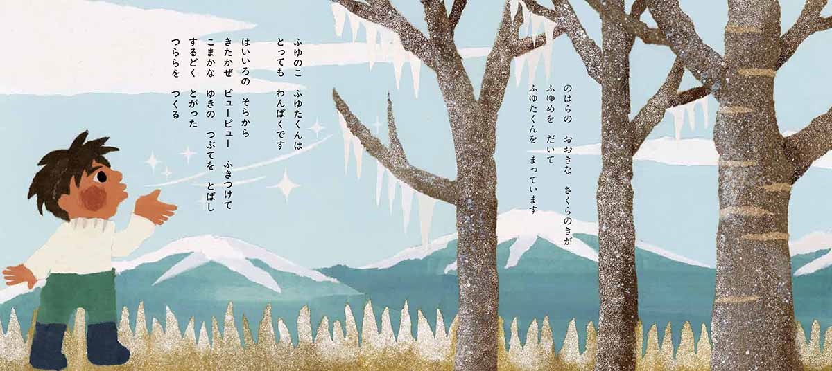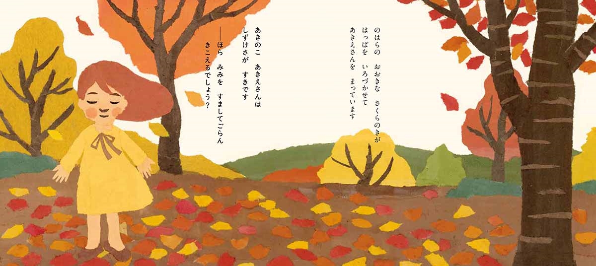 桜の木が季節の変わり目を告げると、それぞれの季節を象徴する子が姿をあらわし、豊かな自然を楽しもうと子どもたちをさそう。春は花の中を行進し、夏は青い空の下で海や川に遊び、秋は草木の声を聞き、冬は冷たい自然にふれる。そして、きせつの子たちは、手をつないでおどり、季節がめぐることを教えてくれる…。四季の美しさと喜びを、映像的な形式をとった詩と、素朴で温かみのあるちぎり絵でえがいた絵本。