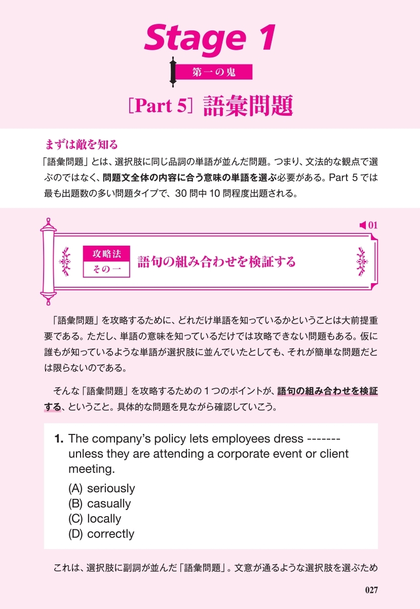 少しの知識と、少しの視点の転換により、Part5&6はたちまち得意パートに変わります。本書では、少年が鬼ノ島に鬼退治に行くという、ちょっとしたオリジナルストーリーをあえて入れています。ロールプレイングゲームとまでは言えませんが、ページを繰るたびに、1歩ずつ力を付けていくプロセスをぜひ楽しんでください。第一の鬼~第十二の鬼まで、少年の成長とともに、Part5&6攻略の最重要ポイントを紹介します。(本文より)