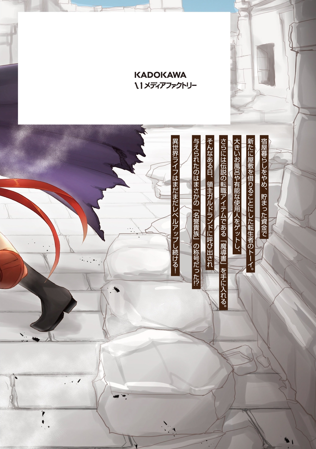 大きいお風呂に有能な使用人をゲットし、さらには伝説の転職アイテムである「魔導書」を手に入れる。