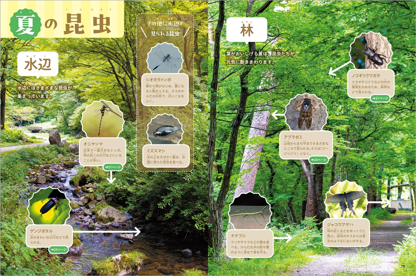 昆虫、植物、気象、気温、天体など小学校で学ぶ理科の内容を季節ごとに分類。昆虫や植物についてはその季節以外の様子も紹介。それらの変化と季節の変化を意識することで、各単元の相互のつながりがわかり、理科の学びが深くなります。巻末に掲載した用語で季語になっているものを紹介。俳句などの国語学習にもリンクします。