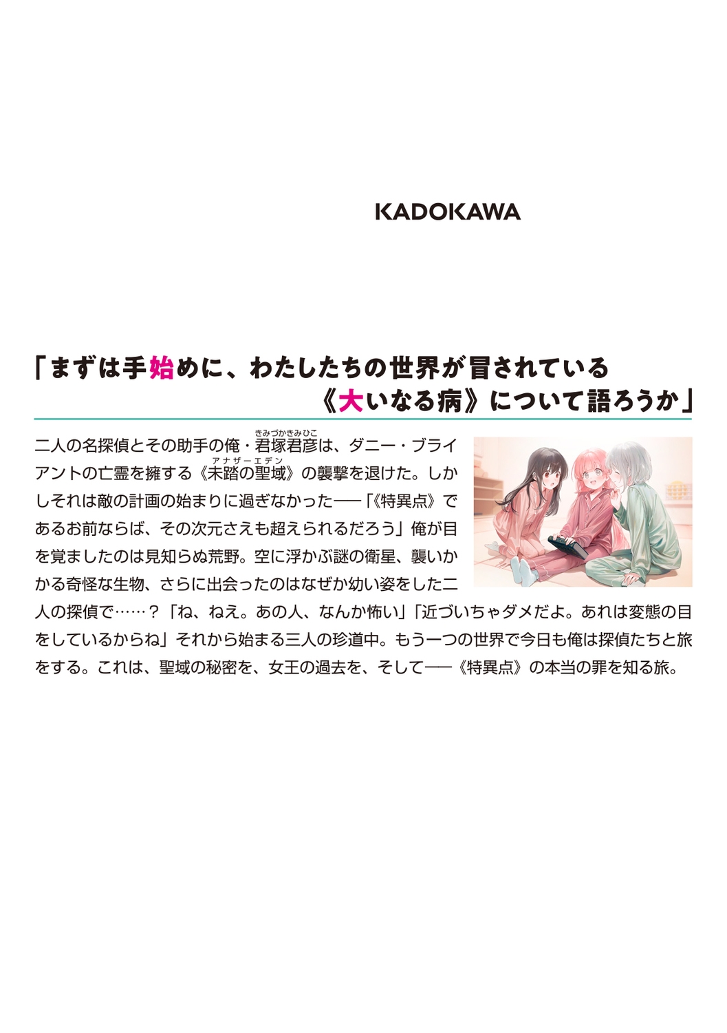 二人の名探偵とその助手の俺・君塚君彦は、ダニー・ブライアントの亡霊を擁する《未踏の聖域》の襲撃を退けた。