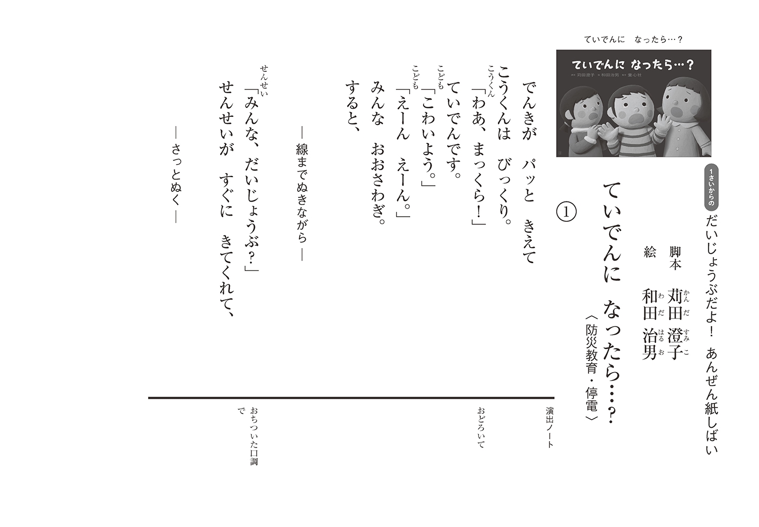 停電のときはどうすればいいのかな? 電気がつくまでの安全な過ごし方をわかりやすく教えてくれる紙芝居です。