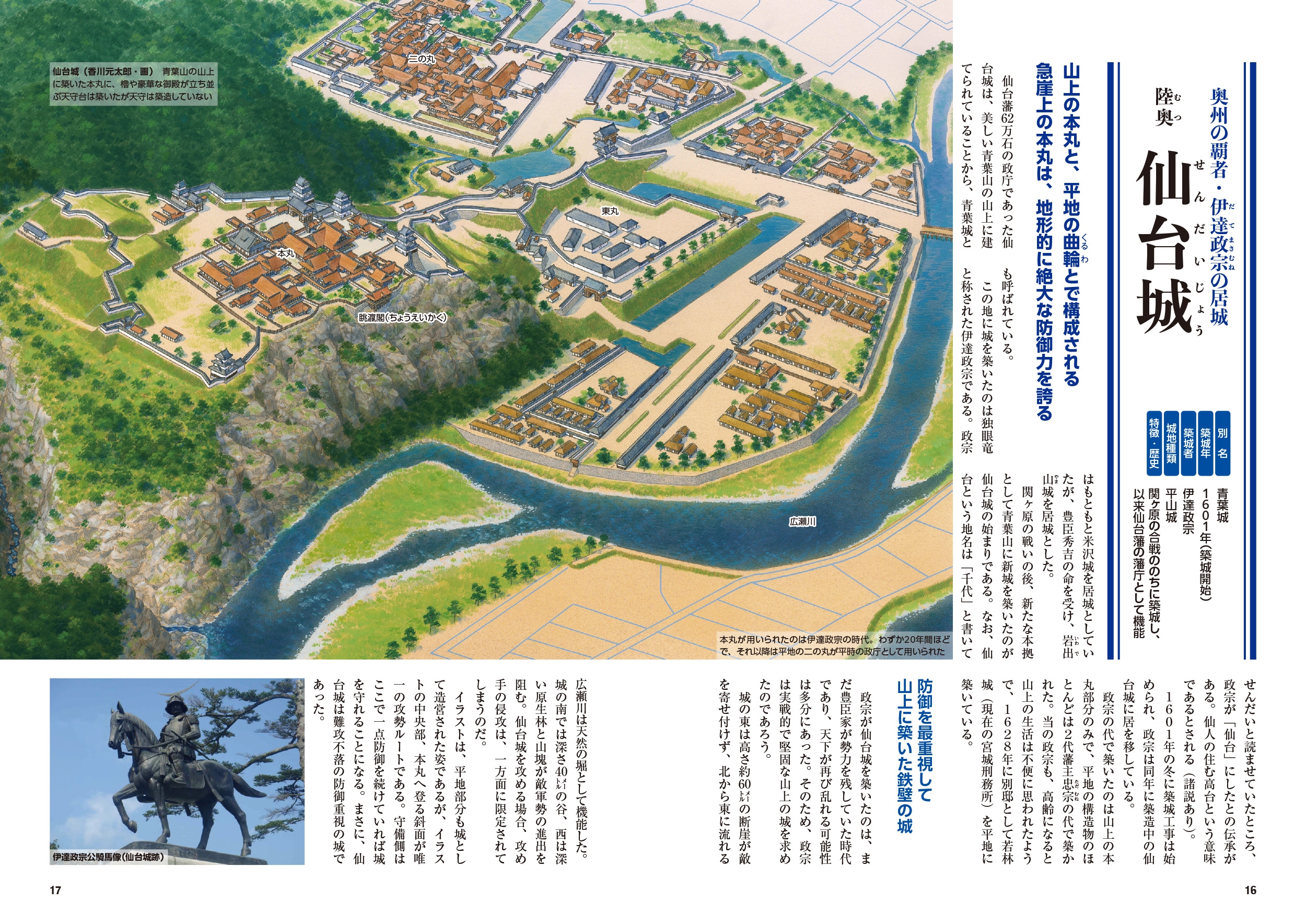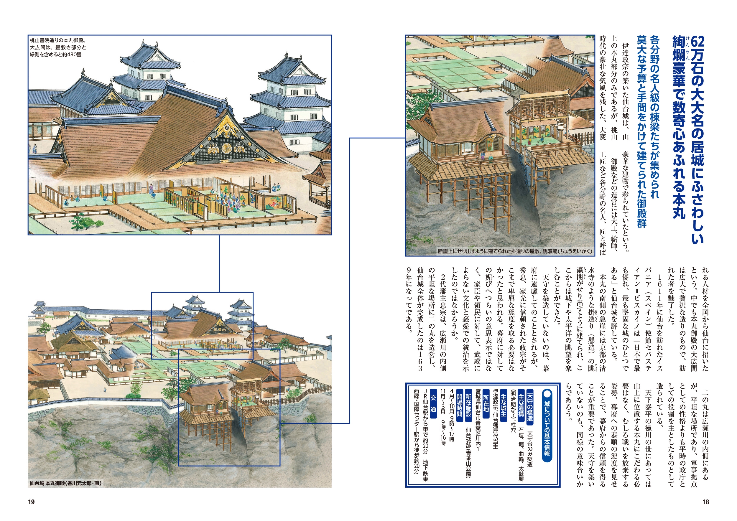 圧倒的なスケールの写真と城郭イラストの第一人者・香川元太郎氏の総天然色イラスト(俯瞰図など)を用いて、城の外観・驚きのカラクリ・内部構造など名城の魅力を余すことなく訴求!