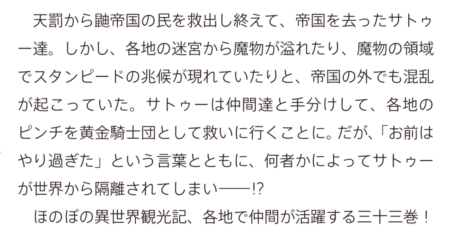 ほのぼの異世界観光記、各地で仲間が活躍する三十三巻!