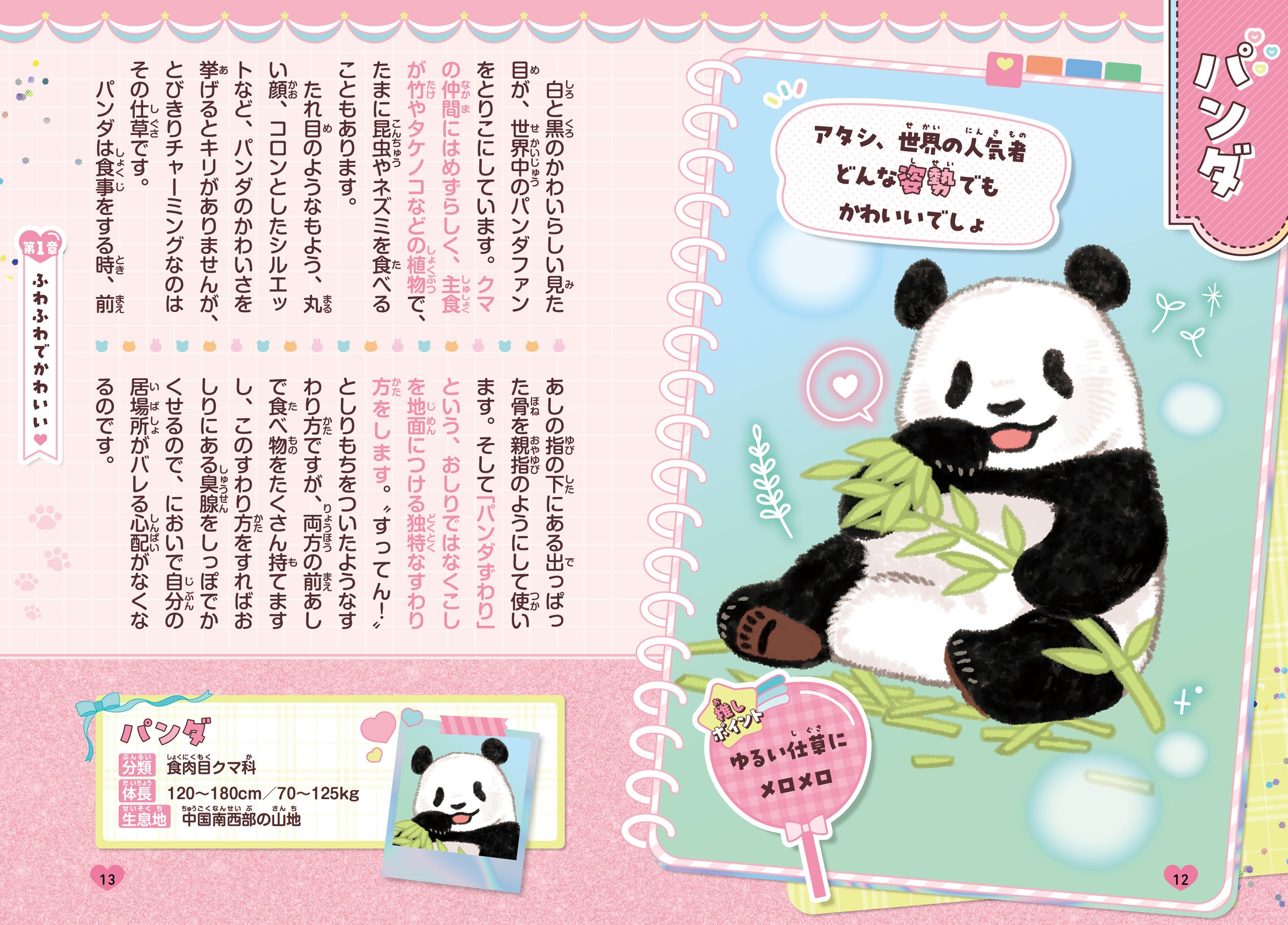 どうぶつのかわいらしい見た目だけではなく、生態やおもしろ行動など、読めばもっと好きになること間違いなし!「ふわふわでかわいい」「甘えん坊でかわいい」「かっこかわいい」「おもしろかわいい」の4章立てと、かわいいイラストと共にどうぶつの生態を深く知ることができます。全70種類の動物とおもしろい3コママンガを5本掲載しています。また、そのどうぶつならではの特徴を「推しポイント」として紹介することで、もっとメロメロになれる1冊です。著者は、作家・タレントとして活躍する篠原かをり氏。