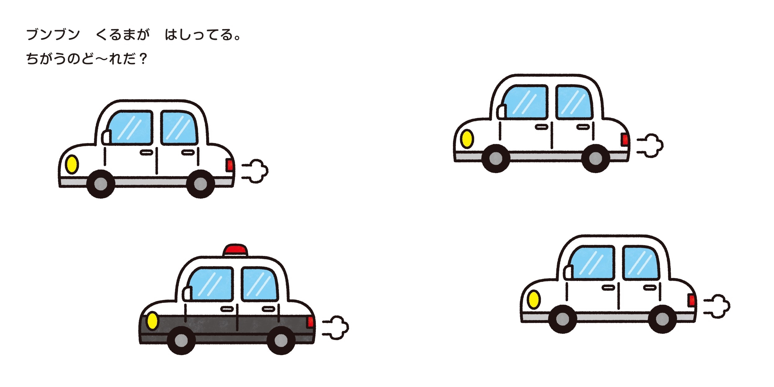 ブンブン くるまが はしってる。ちがうのど~れだ?