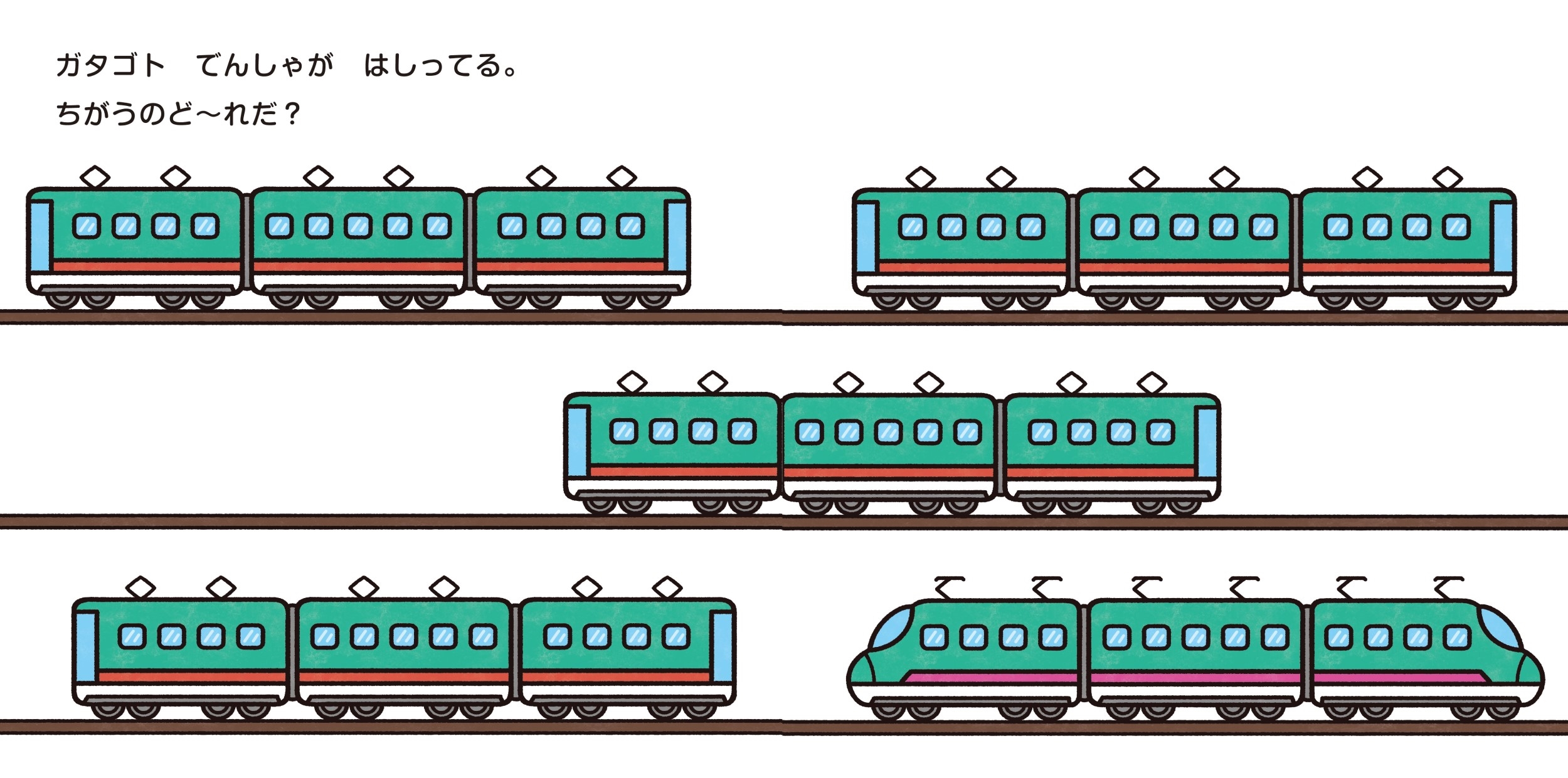 ガタゴト でんしゃが はしってる。ちがうのど~れだ?