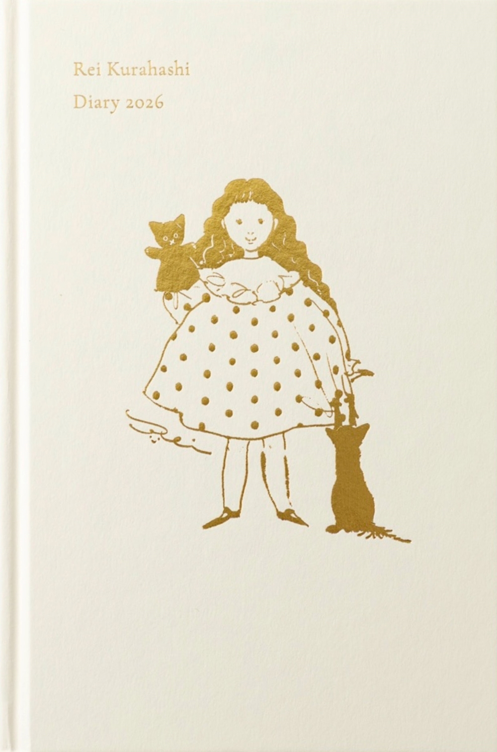 2026年版の絵のテーマは「猫とファンタジア」。マンスリー+ウィークリー+フリーリスト+メモページの構成で、実用的な用途だけでなく、くらはしさんのチャーミングなアートを物語のように堪能できます。表紙は箔押し、高級紙を使用した上質で拘りのデザイン。もっているだけで幸福感を味わえる、一年間のお守りのような手帳。