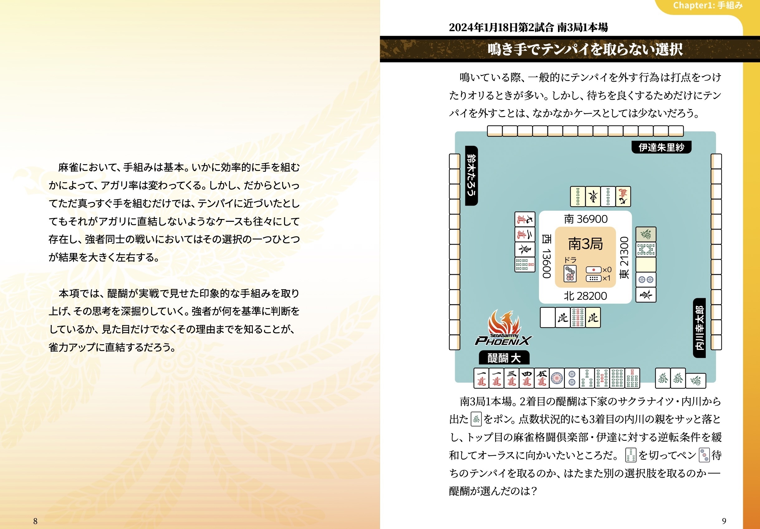 本書では醍醐のMリーグでの実戦譜を元に、醍醐の独特な攻守バランスに基づいた手筋を解説している。