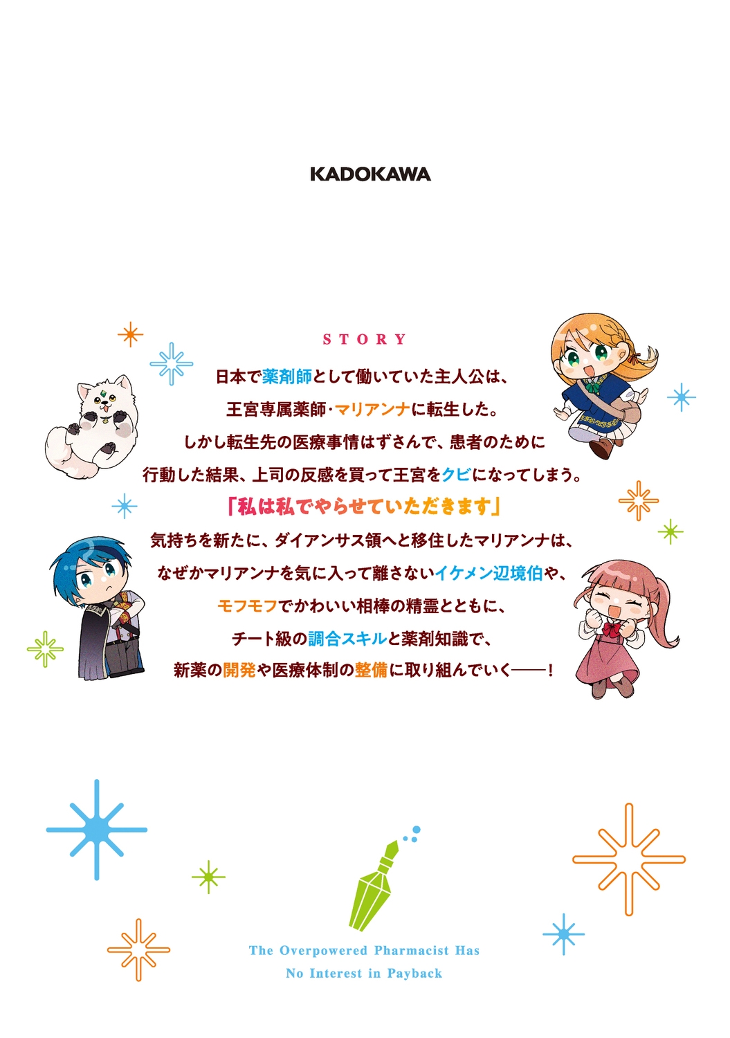日本で薬剤師として働いていた主人公は、王宮専属薬師・マリアンナに転生した。