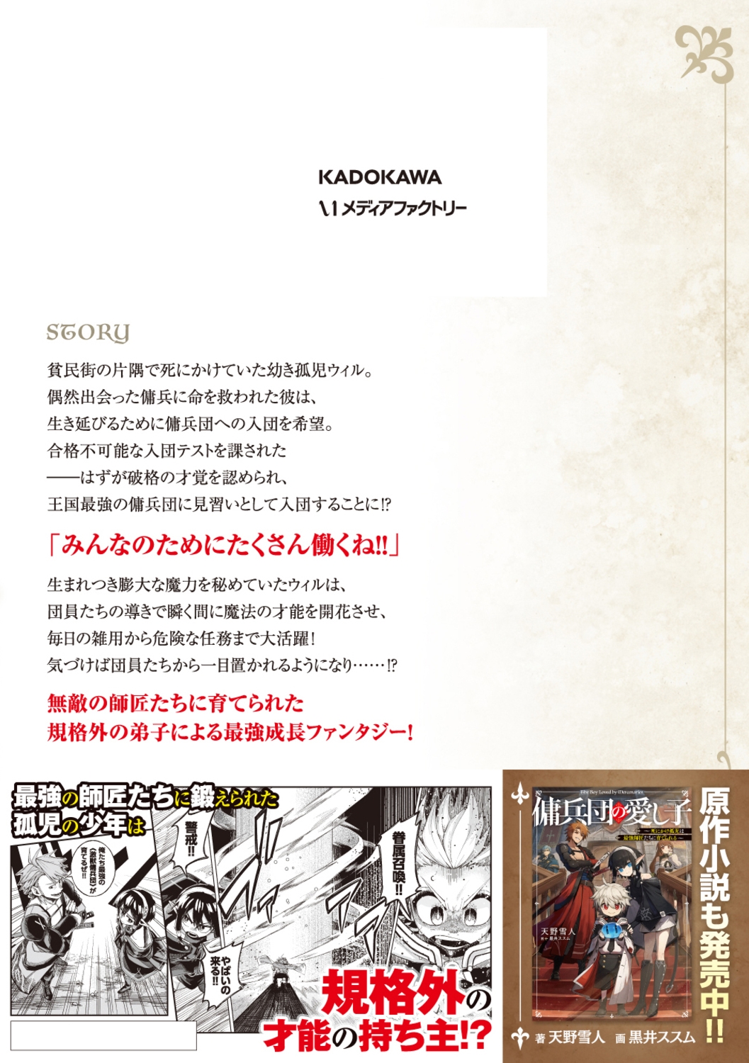 生まれつき膨大な魔力を秘めていたウィルは、団員たちの教えで瞬く間に魔法の才能を開花させ、毎日の雑用から危険な任務まで大活躍!