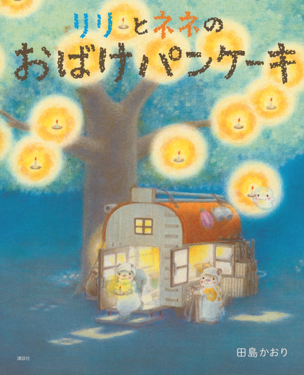 リリとネネとおばけちゃんは、夜のパンケーキ屋さんをひらくことにしました。