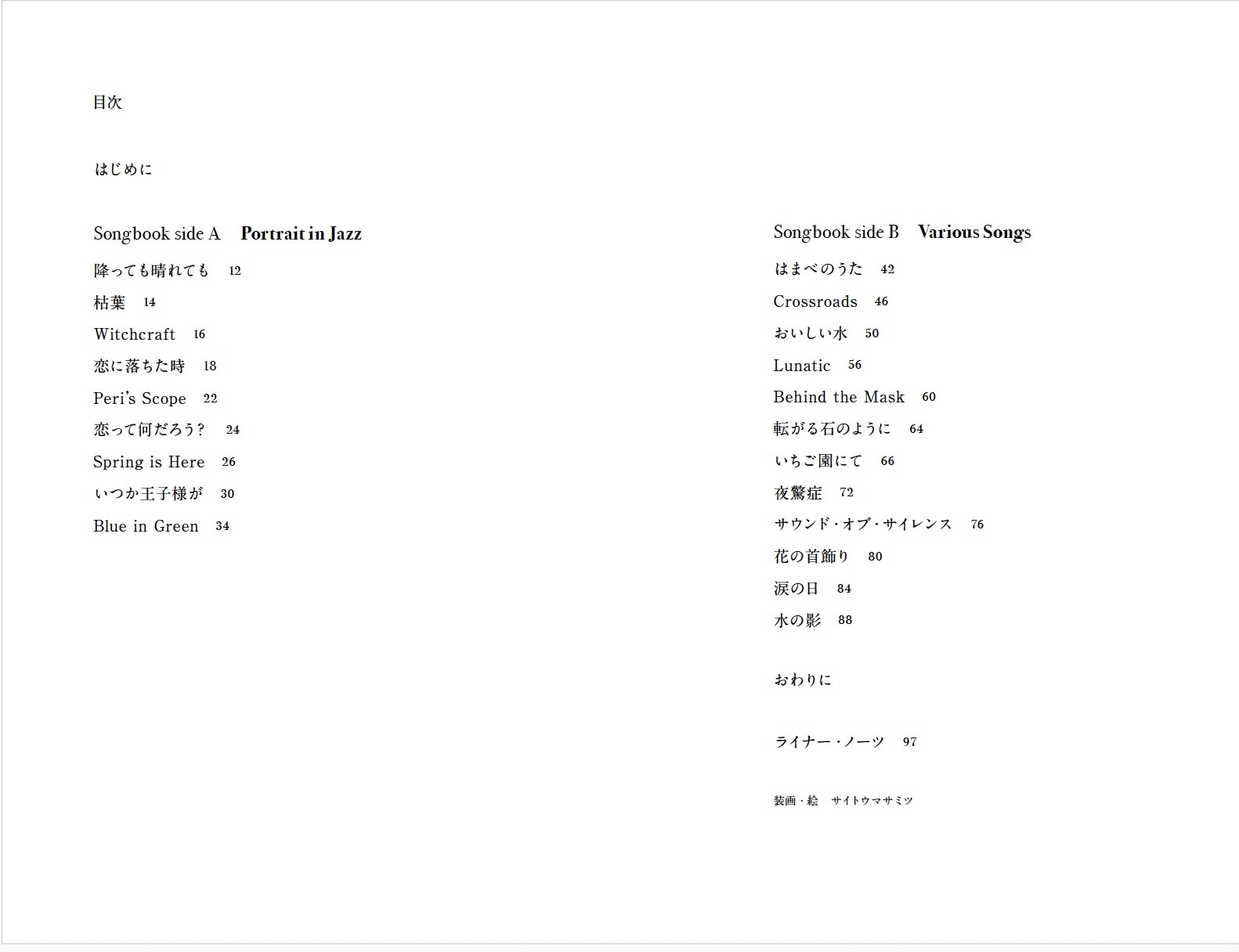 写真評論家としても知られる飯沢耕太郎の5作目となる詩集。音楽にインスパイアされた詩をまとめたもので、10月、鎌倉で開催される詩のフェスに合わせて発行。音楽はザ・ビートルズの「Strawberry Fields Forever」などの名曲をはじめ、ビル・エヴァンス・トリオ『ポートレイト・イン・ジャズ』の全てに及ぶ。巻末にはそれらの曲のバックグラウンドを記したライナー・ノーツを収録。詩を眺め、ライナー・ノーツを読み、また詩に戻る、そんな楽しみ方ができる。サイトウマサミツの挿絵により、それぞれの詩がよりヴィヴィッドに心に響く。