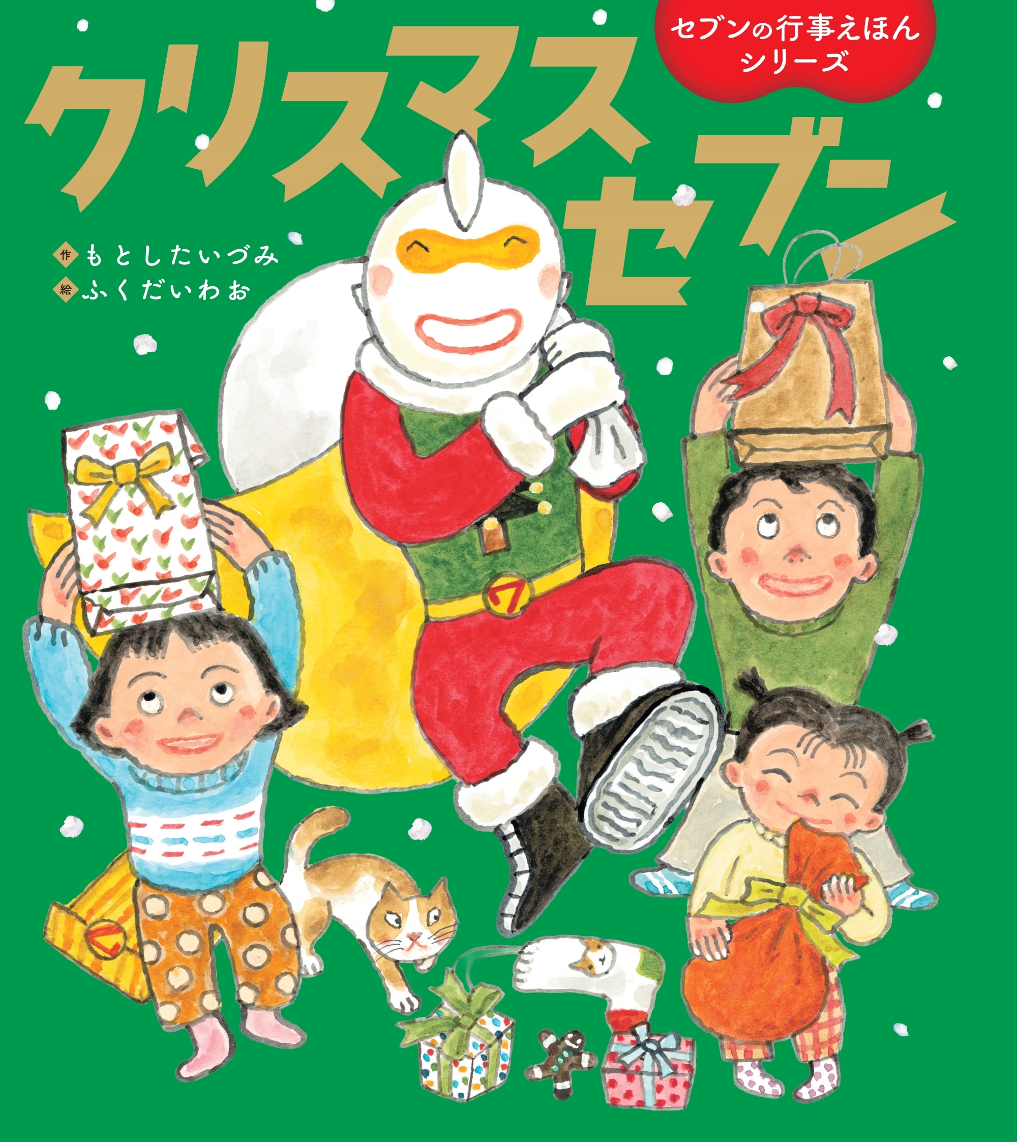 セブンと一緒にクリスマスの魅力をたっぷり味わえる物語。ようちゃんたちはツリーやリースを準備して、イブにはみんなでセブン特製のケーキなどご馳走を囲みパーティーをします。最後にはお楽しみのプレゼント交換も!そしてサンタさんがやってくる夜、クッキーやお茶を用意して、子どもたちは頑張って起きていようとしますが……。もとしたさんのユーモア溢れる文章、ふくださんの表情豊かなセブンや子ども達の絵にもご注目ください。