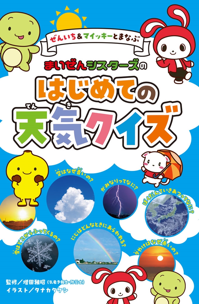 YouTubeから生まれた大人気ユニット「まいぜんシスターズ」のぜんいちとマイッキーといっしょに、天気や気象の知識を身につけよう! 気象災害、自然災害が頻発する昨今、天気の知識を身につけ、メディアの気象情報やニュースに注意を向けられるようになることはとても重要です。「空はなぜ青いの?」「雨つぶの形を大きくしたらどんな形?」「かみなりって何?」「どうして海の近くは風が強いの?」「爆弾低気圧って何?」などなど、天気に関する素朴な疑問から、天気予報でよく耳にする用語の解説まで、楽しいクイズ形式で紹介します。
