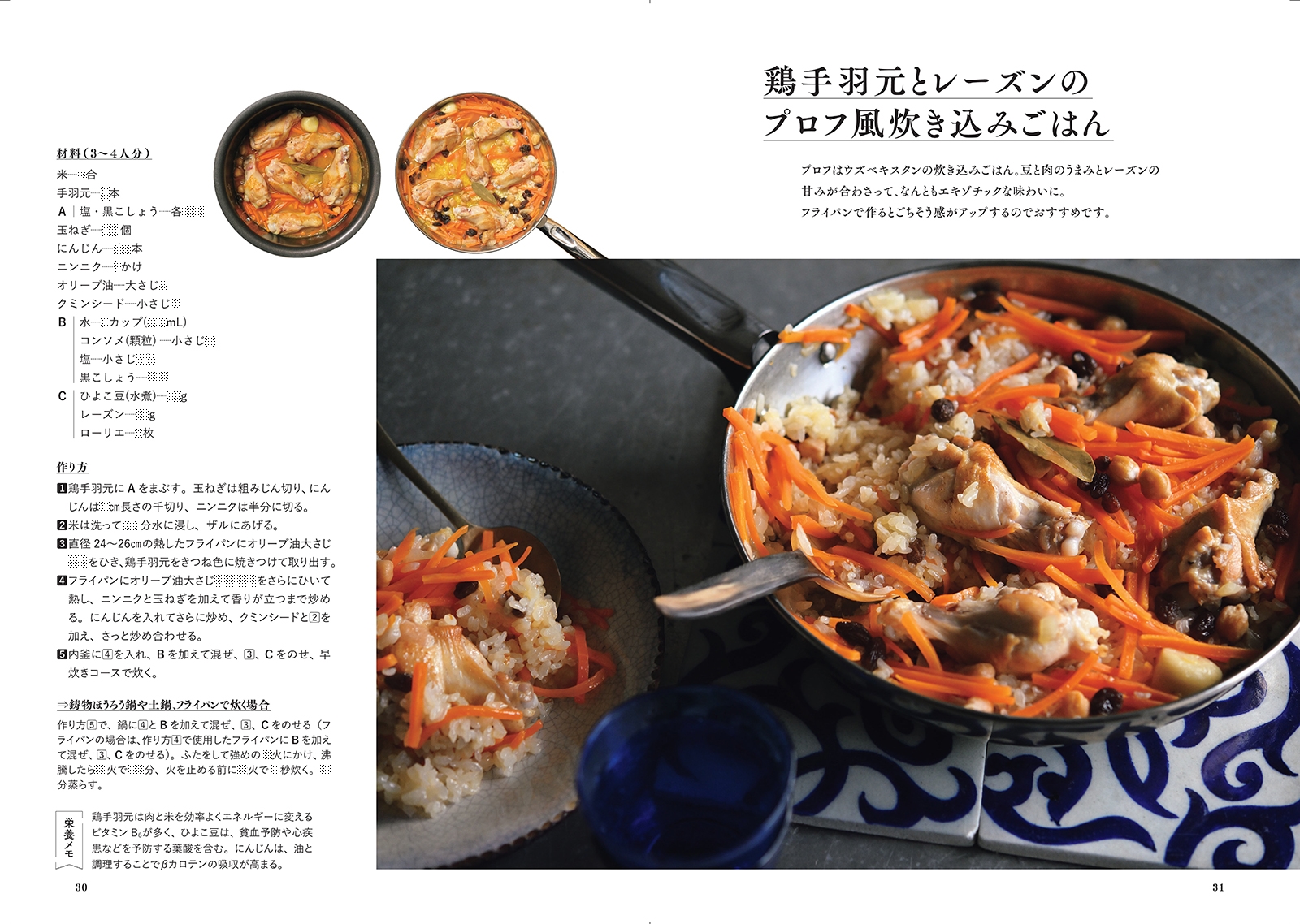 炭水化物、たんぱく質、ビタミン・食物繊維など人が生きるうえで欠かせない栄養素を一品で完結。今までの「炊き込みごはん」とは違う、手軽に作れるだけでなく斬新で作ってみたくなるレシピの数々がここに!